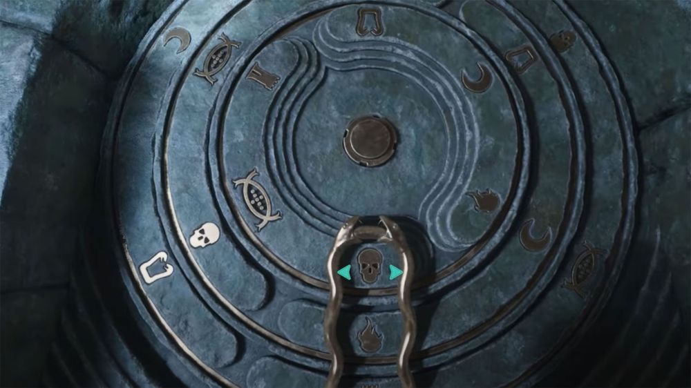 En el caso que nos ha tocado, en el primer círculo debes seleccionar la Torre; en el segundo círculo debes seleccionar las Serpientes que se miran entre sí; y, finalmente, en el disco exterior, debes seleccionar el Fuego. Con ello se abrirá la puerta.