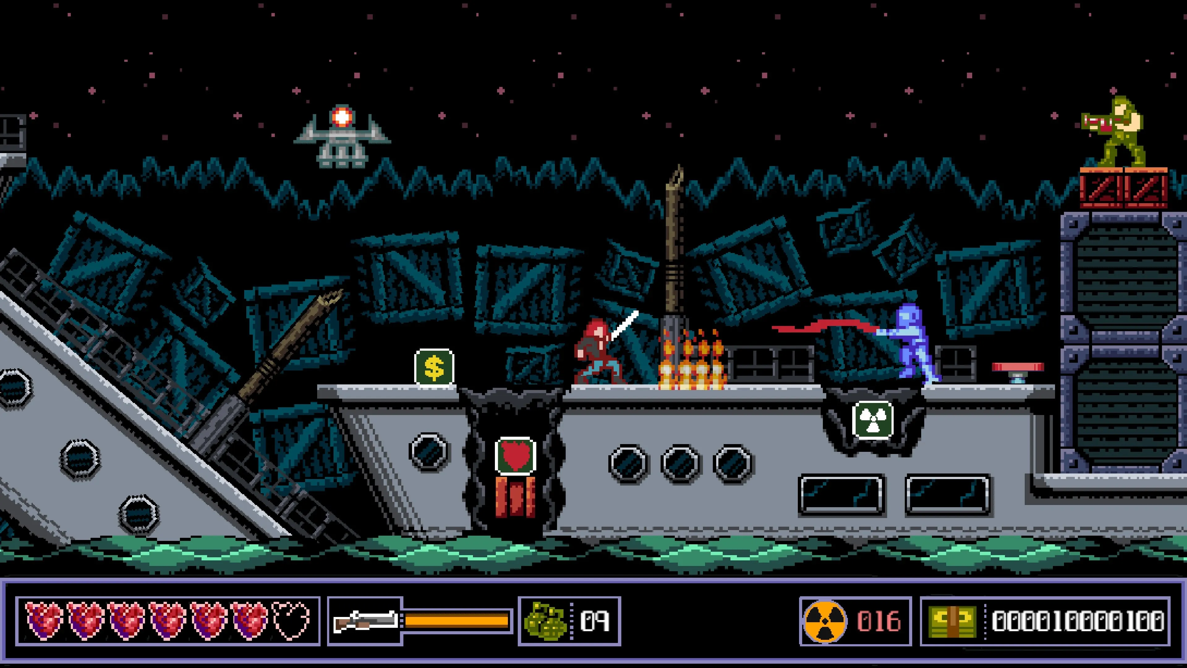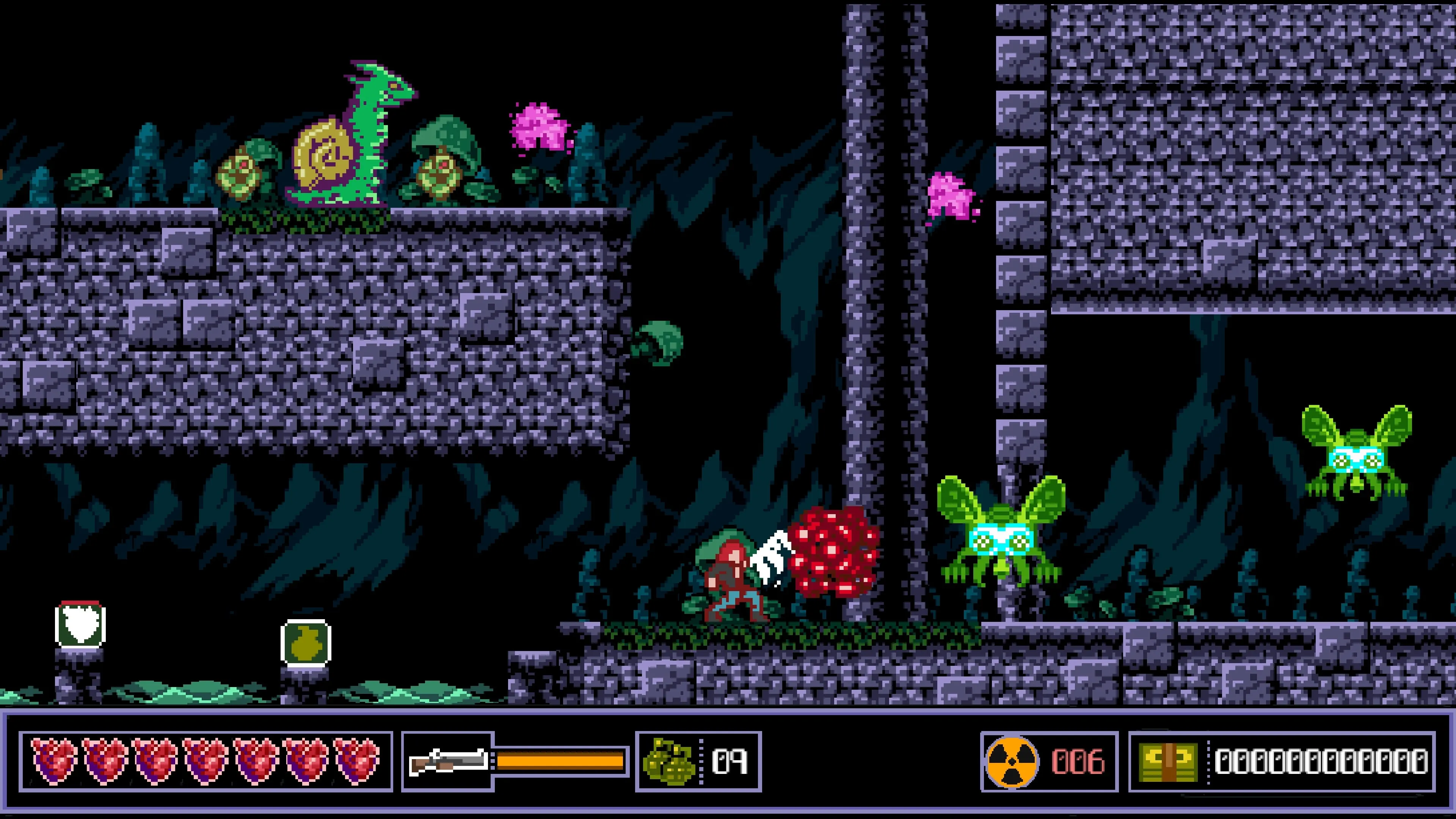 Usa tu espada, granadas y escopeta para abrirte camino a través de este mundo peligroso, al glorioso estilo de los arcades de los años ochenta.