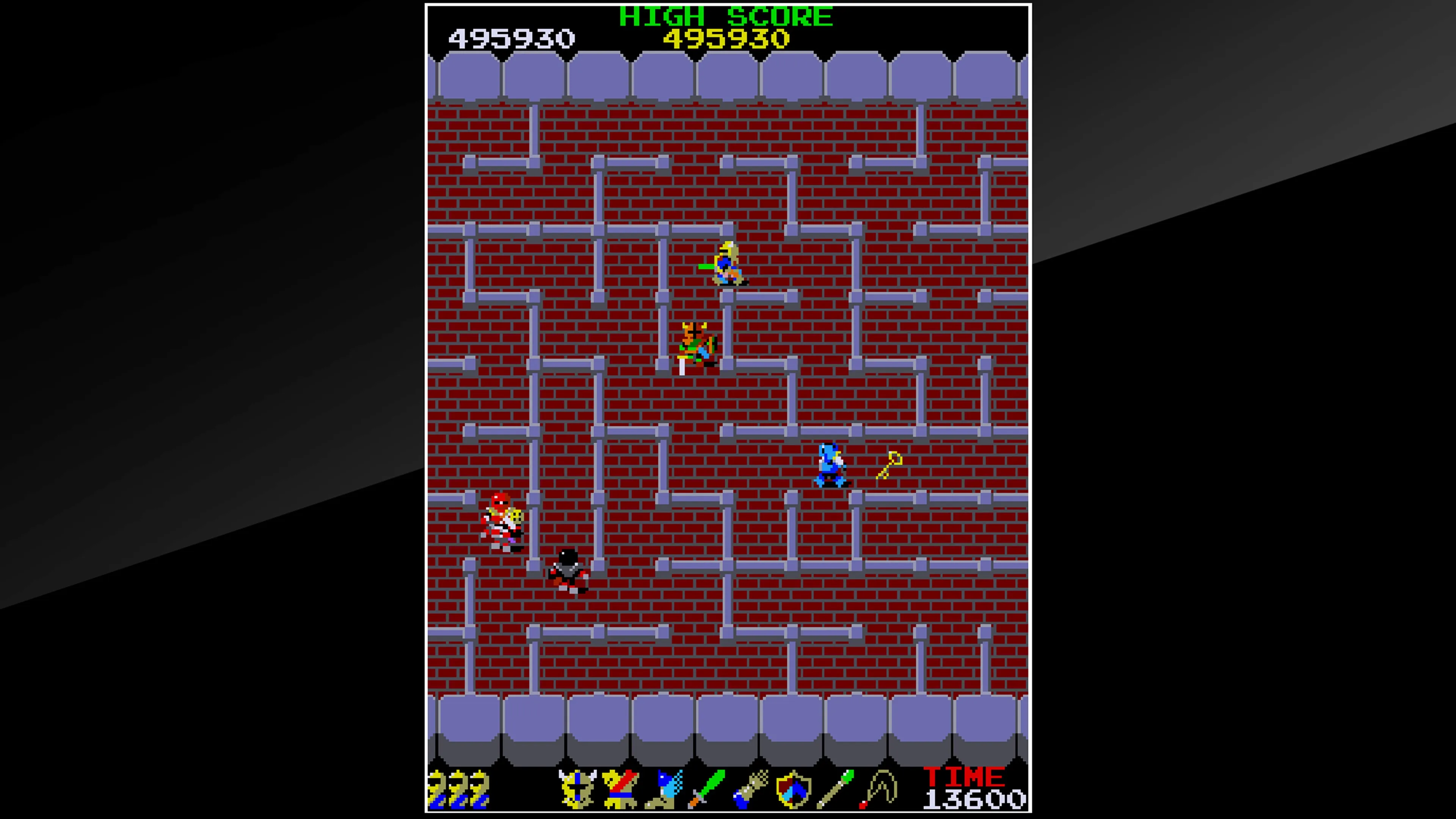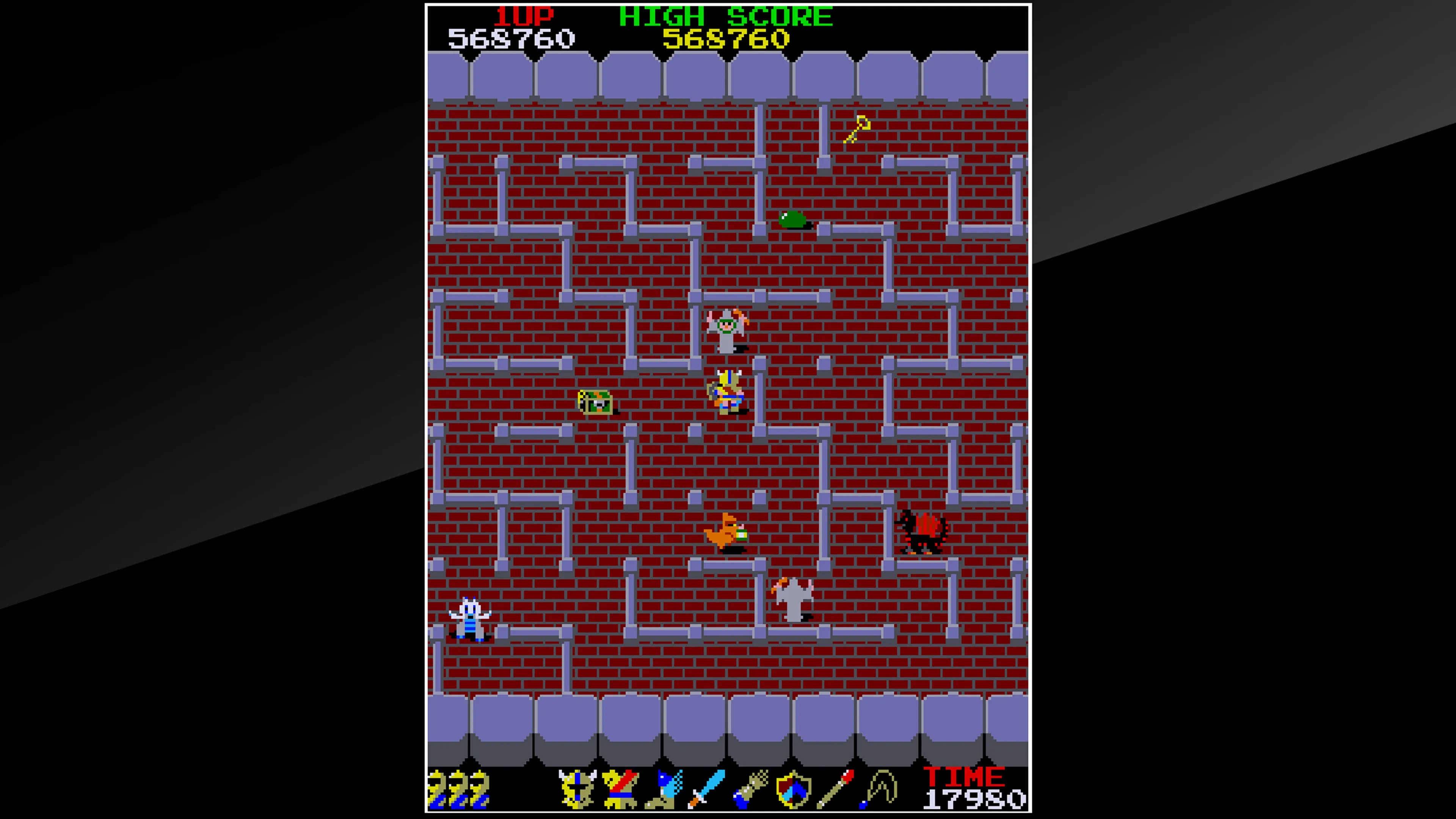 Sube las escaleras una tras otra mientras consigues varios objetos escondidos en cada piso de la enorme torre controlada por DRUAGA, y rescata a tu amante KI que estaba atrapada en el último piso.
