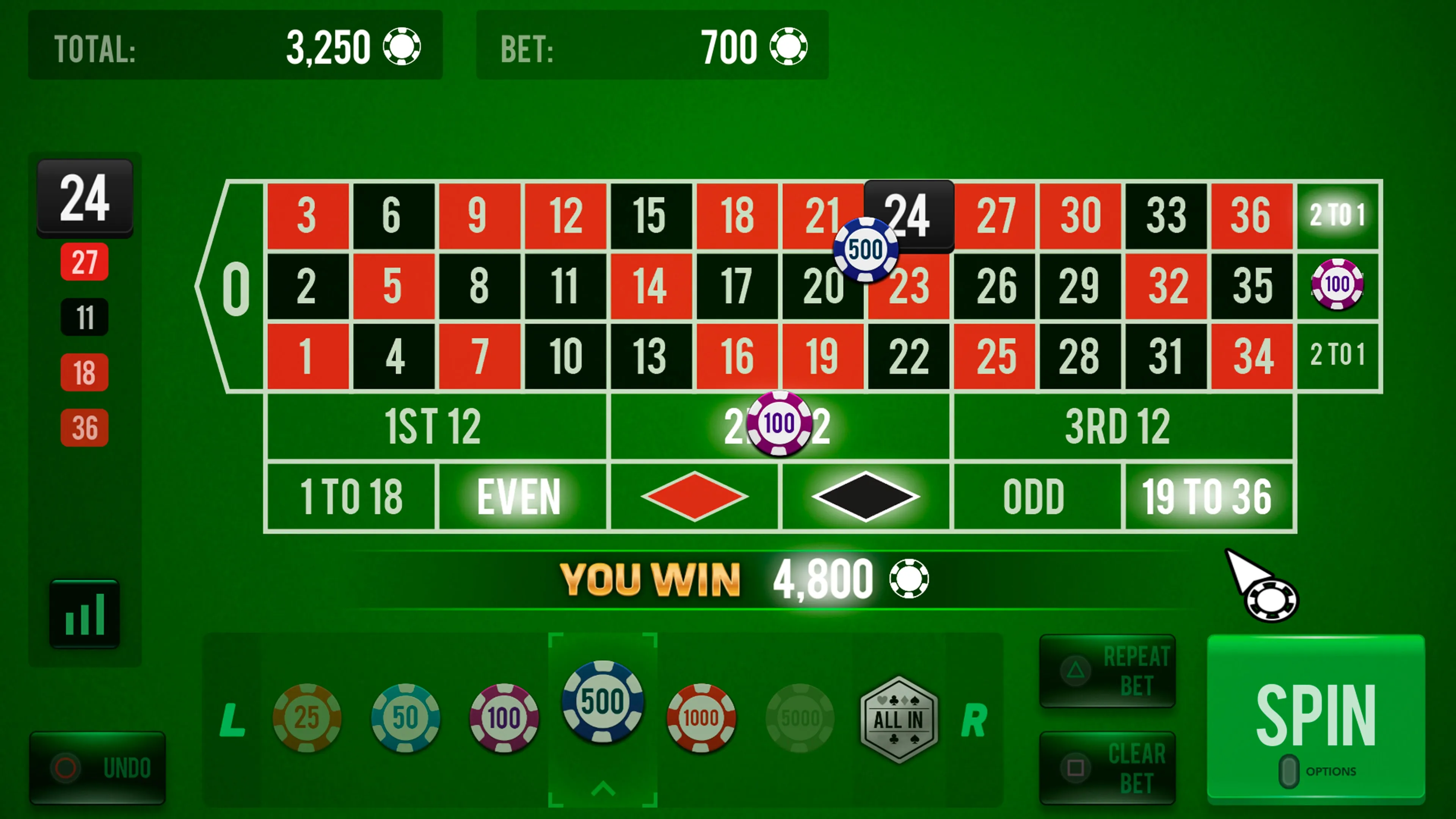 ♥ ¡Una amplia gama de fichas que te permiten simular la experiencia real de Roulette Royal blitz!