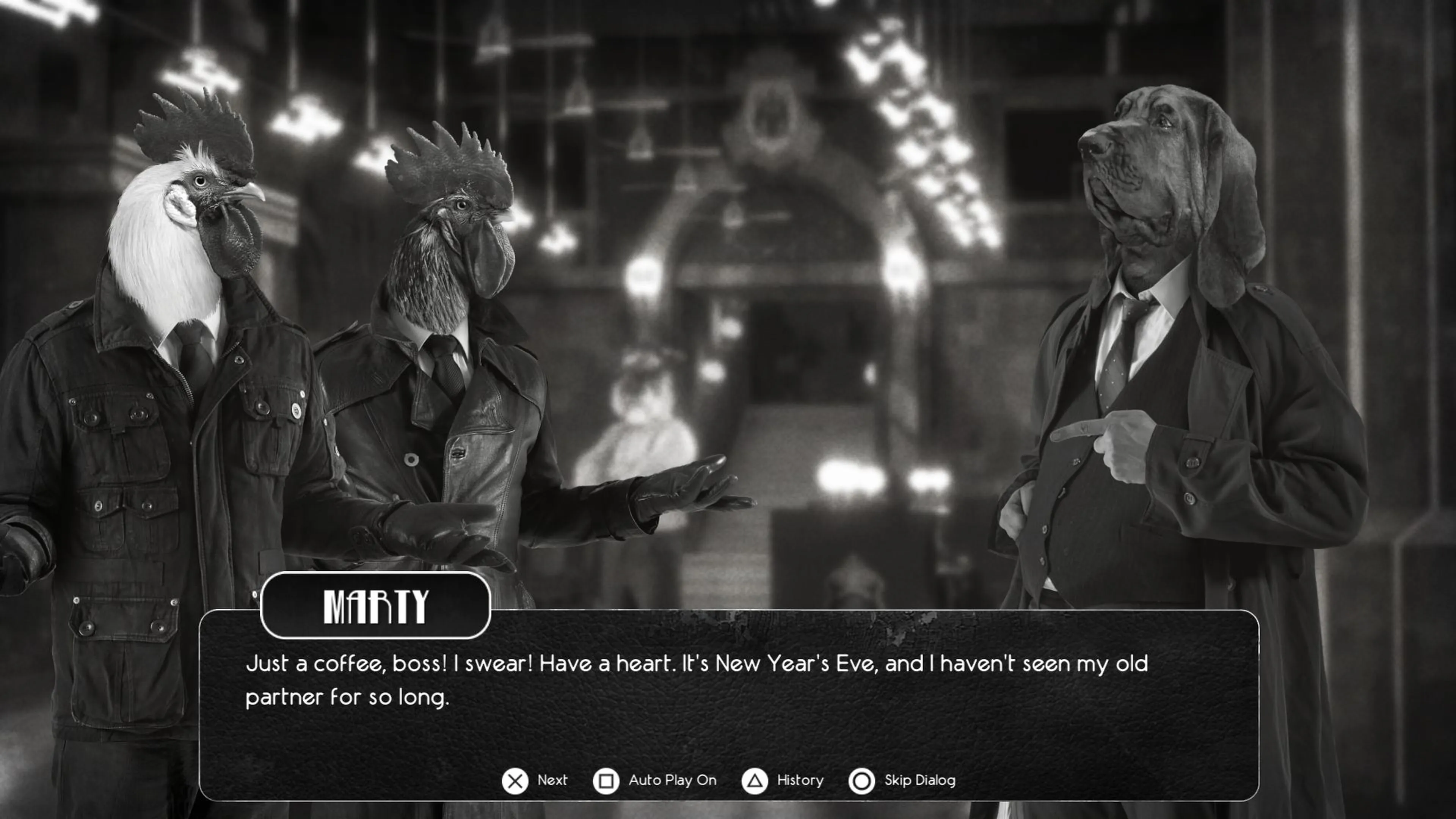 Chicken Police tiene un estilo visual extrañamente sorprendente hecho con el uso de fotos reales y fondos fotorrealistas en 3D, inspirados en películas clásicas de cine negro e influenciadas por características animadas. ¡Su humor negro se ve reforzado por una banda sonora de música original, respaldada por una actuación de voz profesional para todos los personajes con más de 8 horas de diálogo hablado!