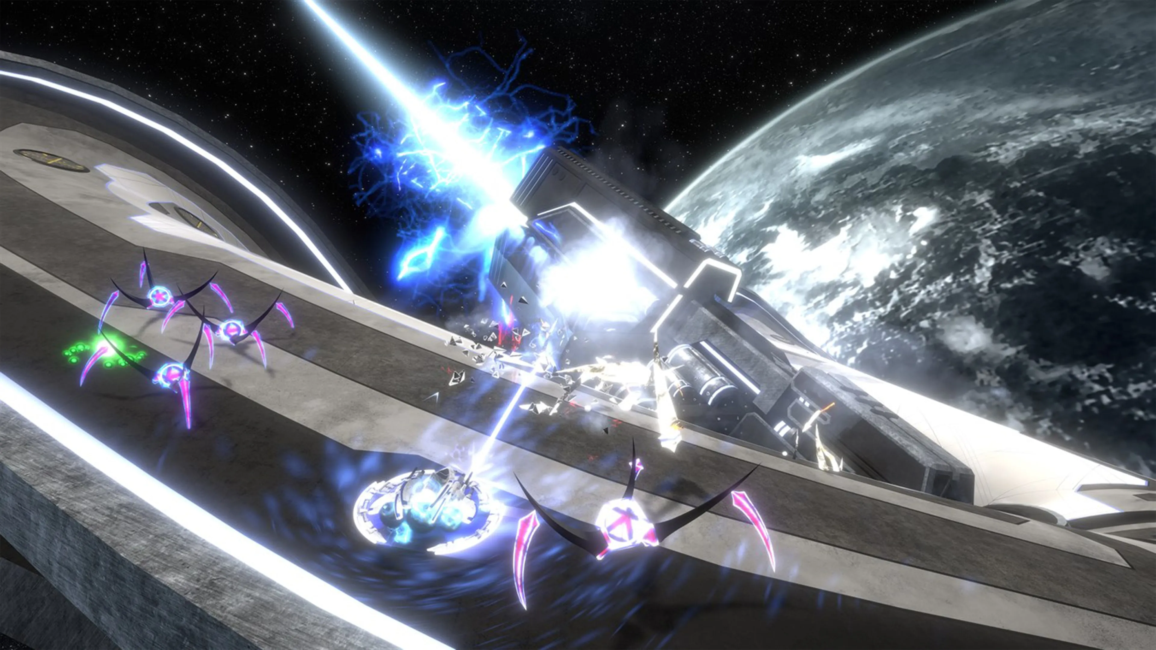 Campaña: Asume el papel de un cosechador de energía en medio de una invasión de arañas galácticas. Tus elecciones te llevarán a asumir una de las tres versiones potenciales del protagonista del juego para combatir la invasión en asteroides, estaciones espaciales y otros escenarios intergalácticos. Cada versión única lleva la historia en una dirección diferente.