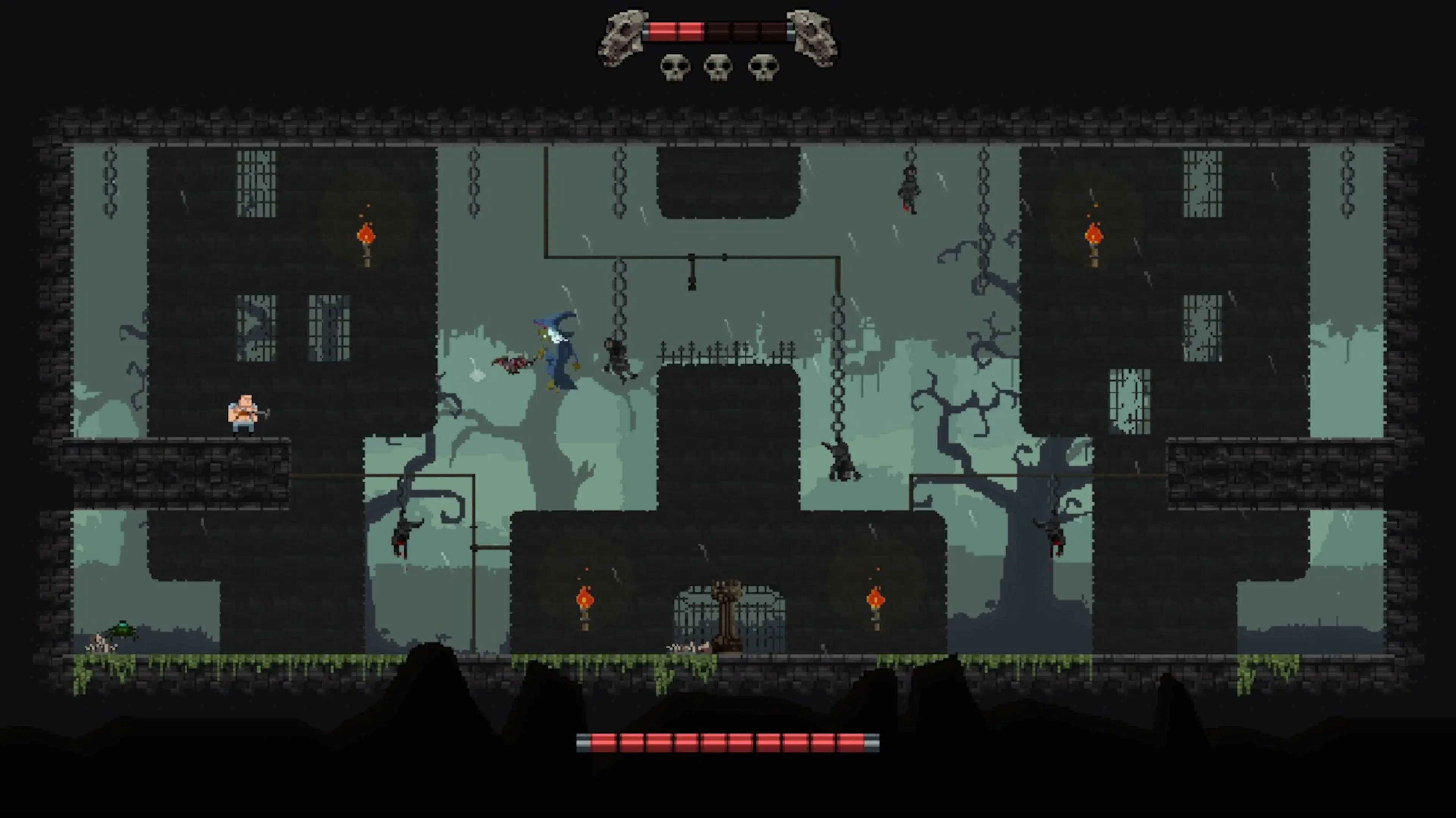 Dark burial es un plataformas 2D con vista lateral, la tarea es pasar el nivel y encender la hoguera de señal. En el camino hacia el objetivo anhelado, al héroe le esperan muchos acertijos que pueden resolverse con la ayuda de su ballesta y flechas. Una gran cantidad de enemigos y trampas no te dejarán aburrirte.