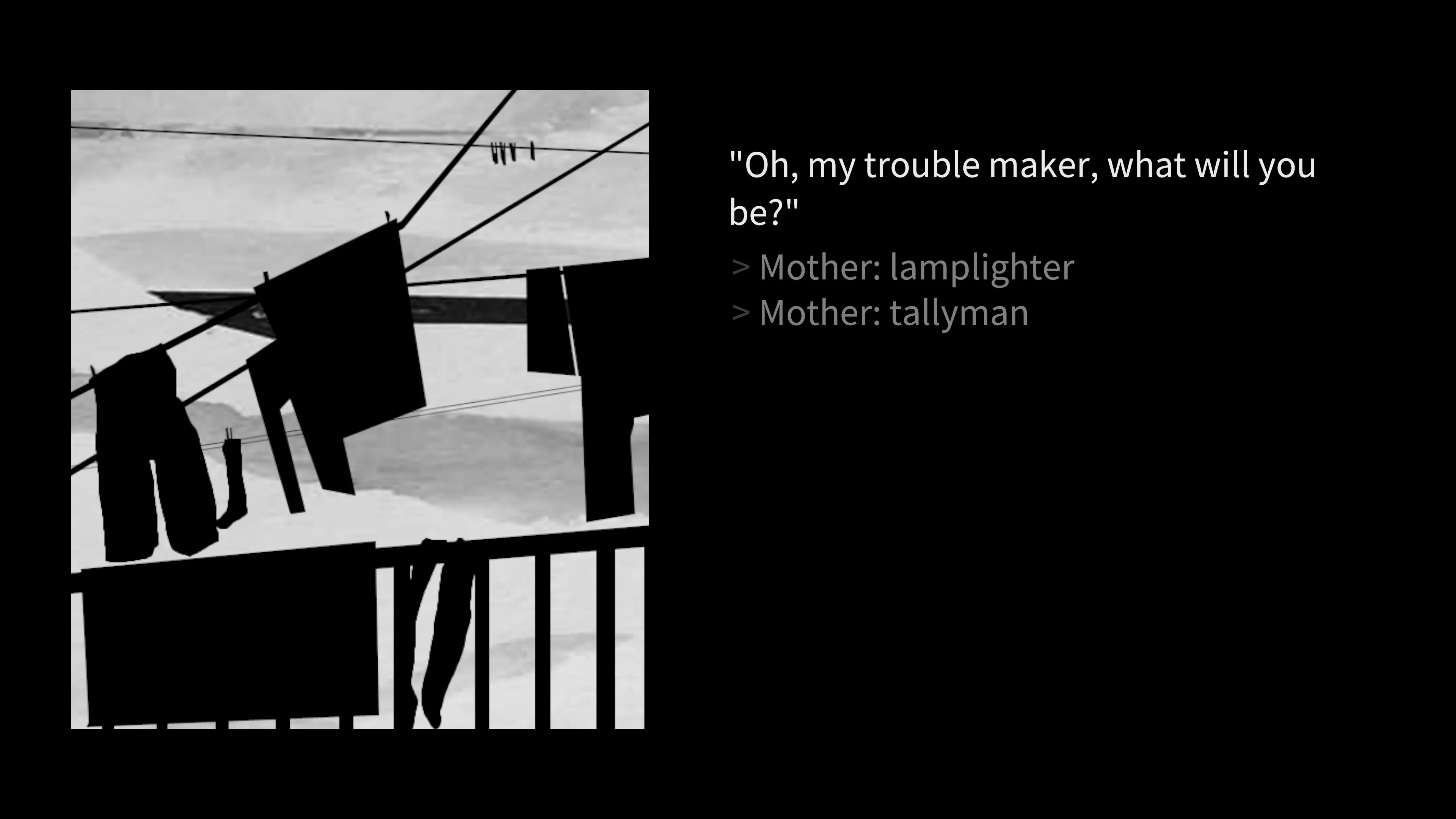 Una y otra vez tendrás que hacer la misma elección para decidir en qué debe convertirse el hijo: un farolero o un vendedor. Al principio tal vez parezca que la situación no te deja ninguna opción. Pero no saques conclusiones precipitadas, toma un momento para pensarlo y entonces, quizás, verás tu historia a todo color.