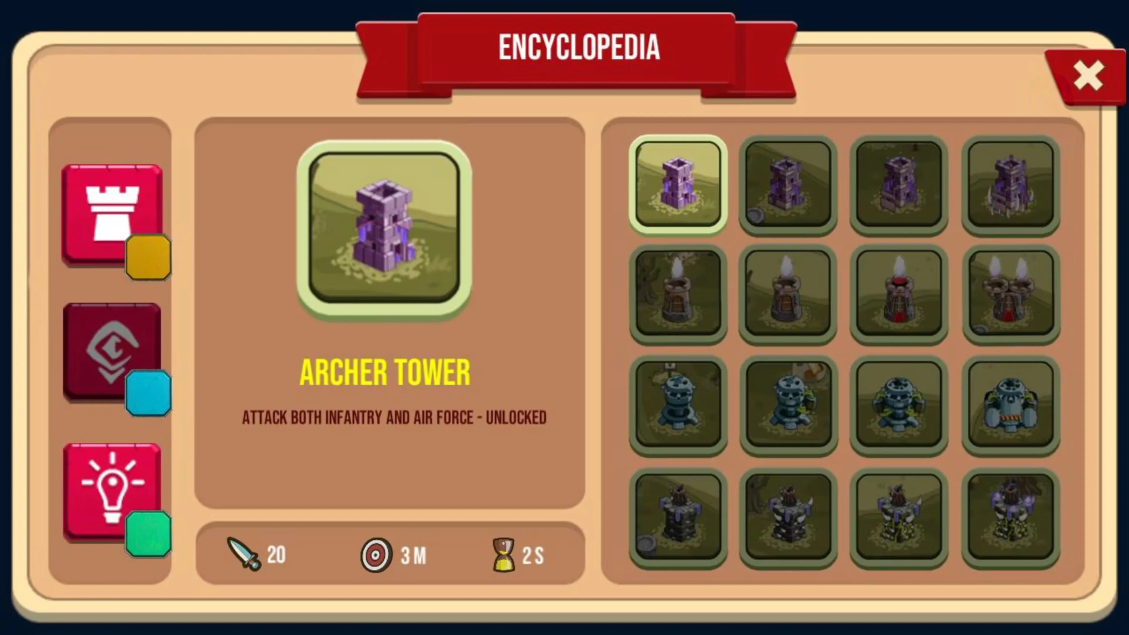 7 tipos distintos de torres con potentes mejoras