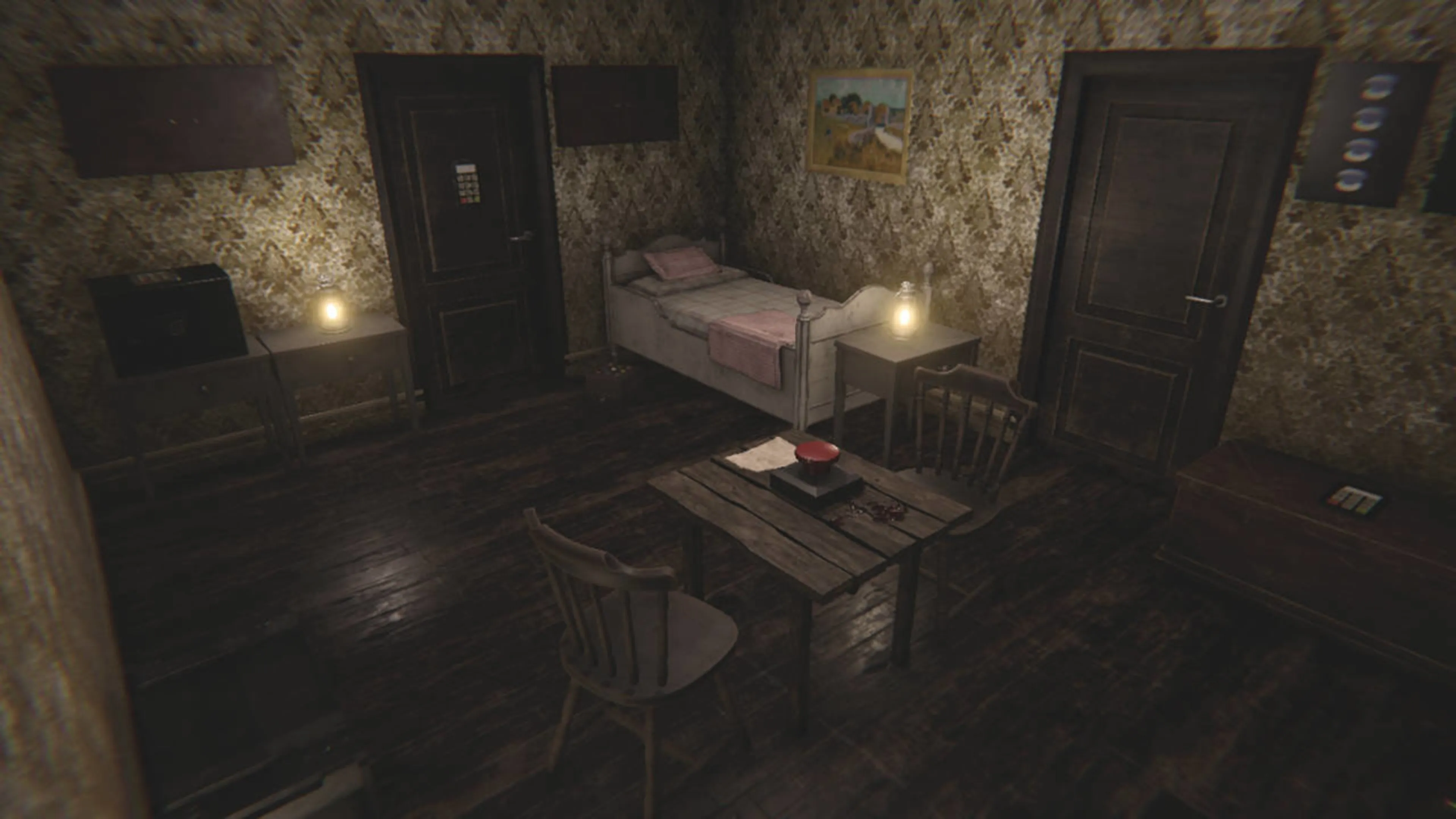 Una habitación, una puerta, un cuchillo con sangre. ¿Qué sucede? ¿Qué sucedió anoche? Tienes que saberlo. ¿Estás seguro de que deseas saberlo? Tienes que irte. ¡Pero debes tener cuidado! Sin importar lo que suceda, ¡no presiones el botón rojo!