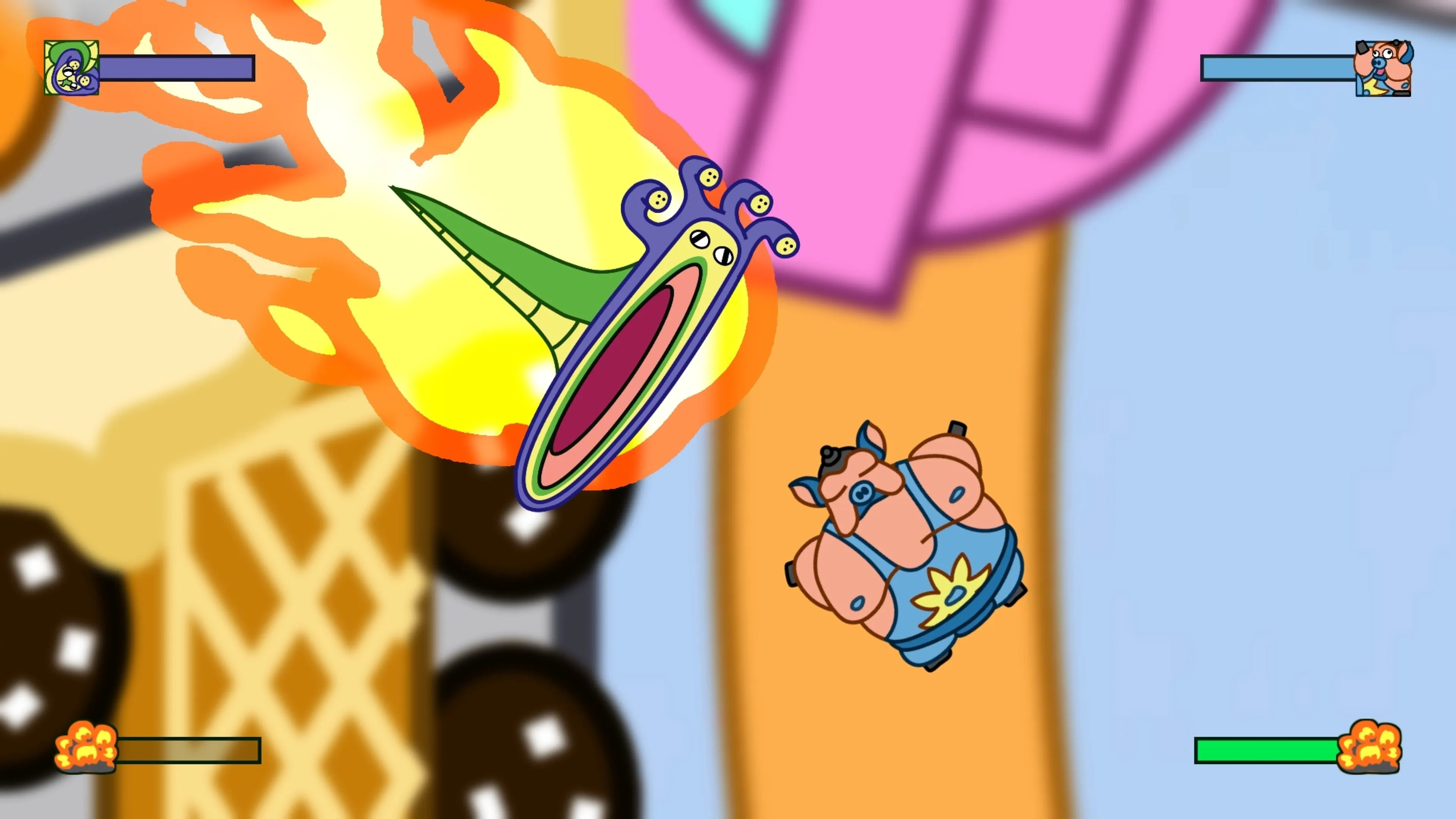 — Gráficos caricaturescos de alto impacto con espectaculares niveles de zoom desde el espacio hasta la cara de un personaje.