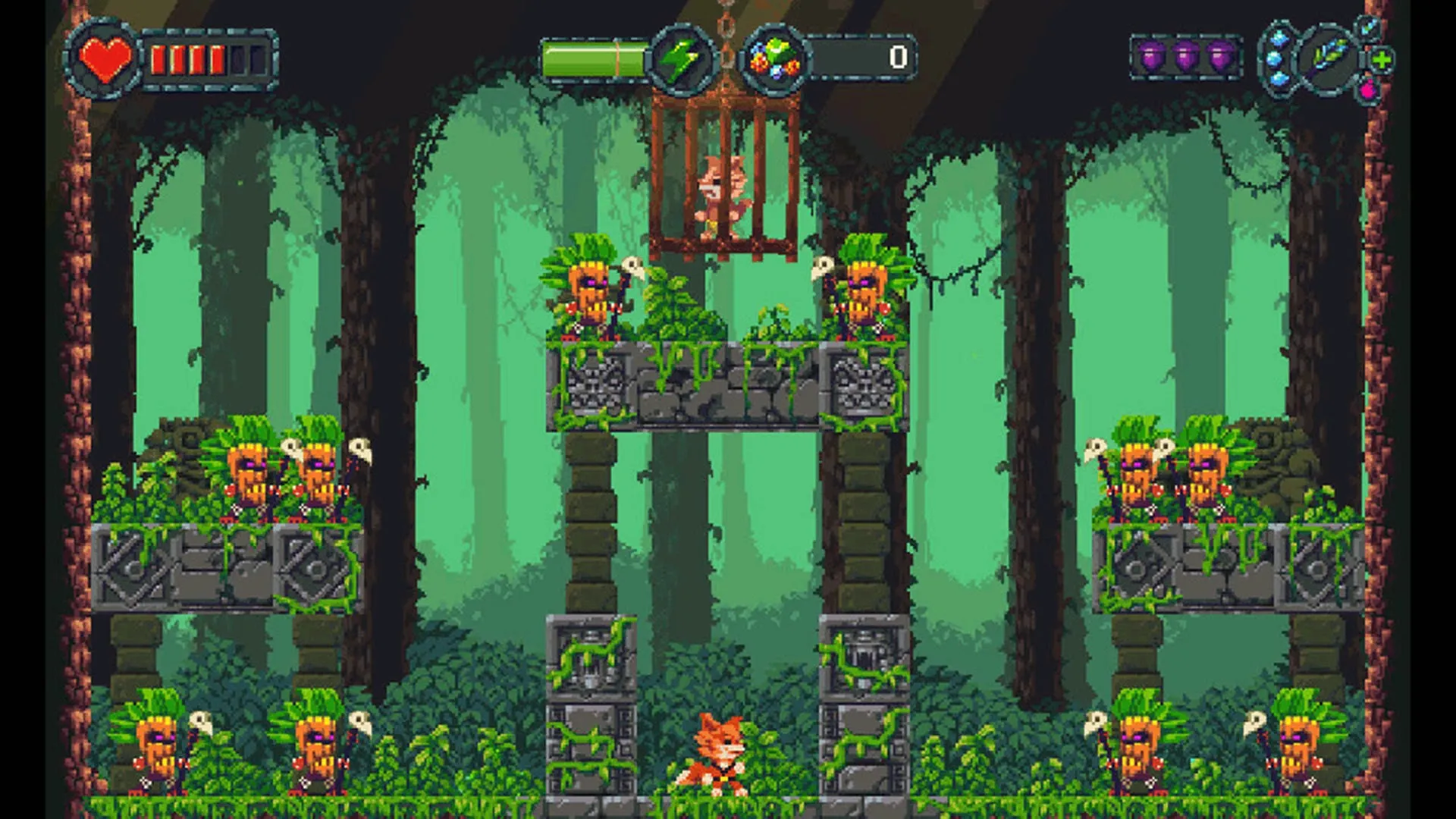 Complete los diferentes episodios, explorando niveles llenos de vida y color con un estilo único de pixel art.