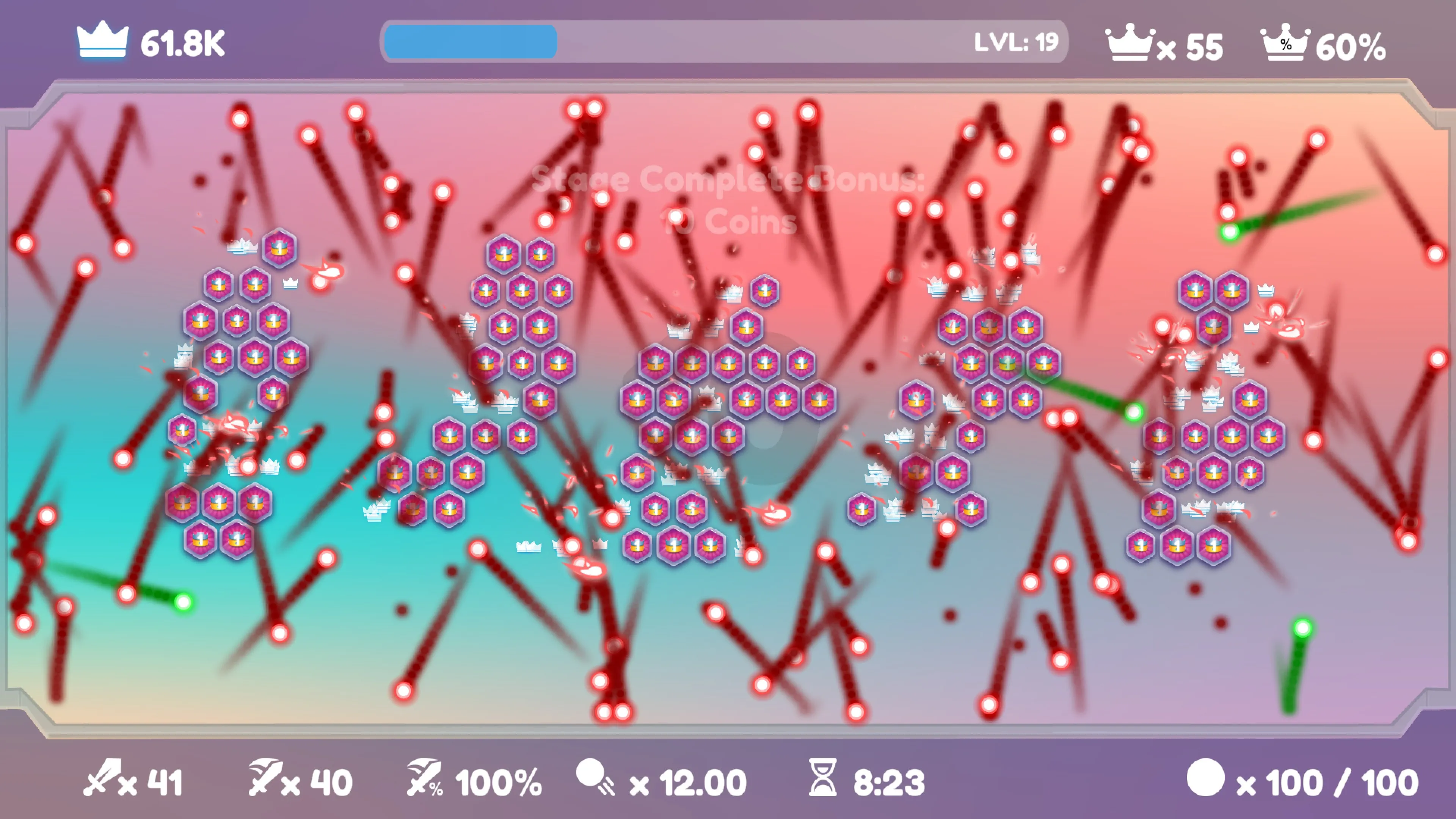 • Elige entre una gran variedad de mejoras durante el juego para despejar el campo más rápido.