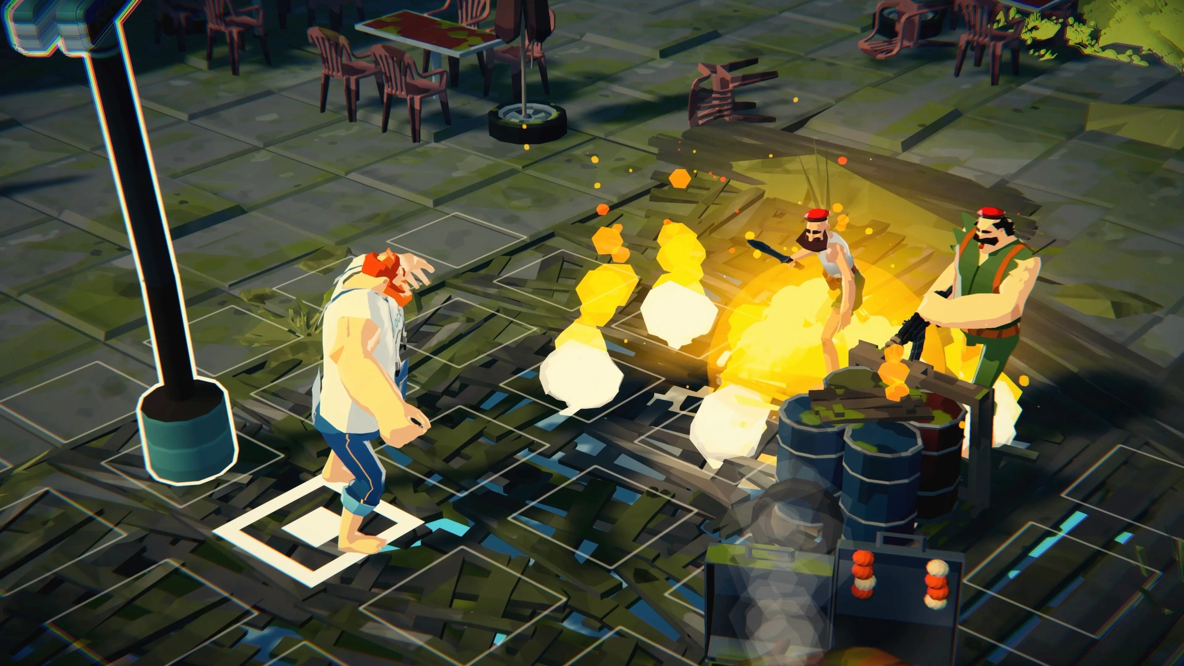 Enfréntate a tus enemigos en un clásico sistema de combate por turnos en el que las tácticas cuidadosas y la resolución de acertijos te ayudarán a salir con vida. Interactúa con el entorno y los objetos que te rodean: derriba un árbol, empuja un carrito de compras contra un enemigo o agáchate detrás de un carro volcado para ganar ventaja.