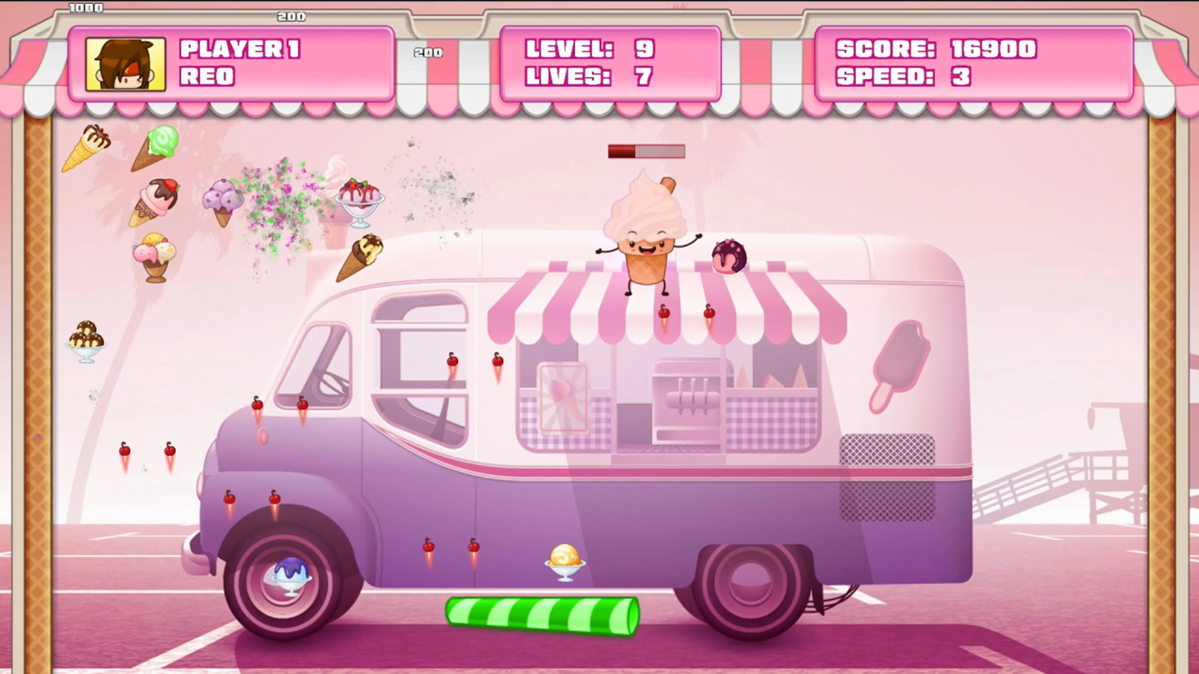 Ice Cream Break es un juego de arcade retro que permite al usuario eliminar artículos de Ice Cream con un remo y una pelota arcade únicos. Niveles de helado animados únicos, mini-jefes de helado animados y potenciadores de helado para recolectar a medida que avanzas por los niveles. Treinta niveles de helado para competir y luchar contra mini jefes en tu camino hacia la victoria. ¡Diversión para un solo jugador y entretenimiento de estilo arcade!