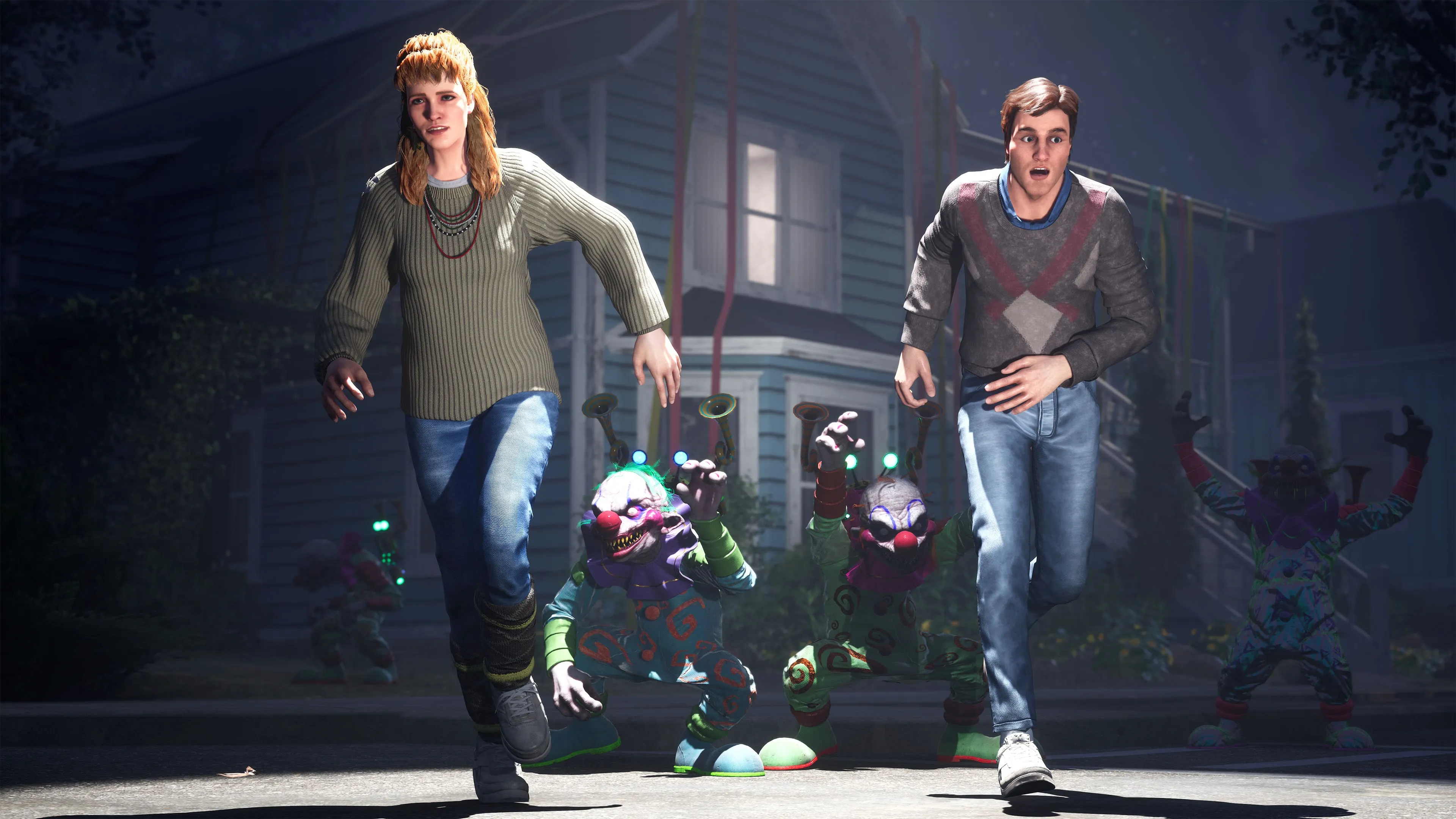 Conviértete en uno de los icónicos Killer Klowns, coopera en un equipo de tres jugadores, usa habilidades de otro mundo, caza a humanos con armas estrafalarias y planifica tu invasión alienígena para capturar a la población de Crescent Cove.