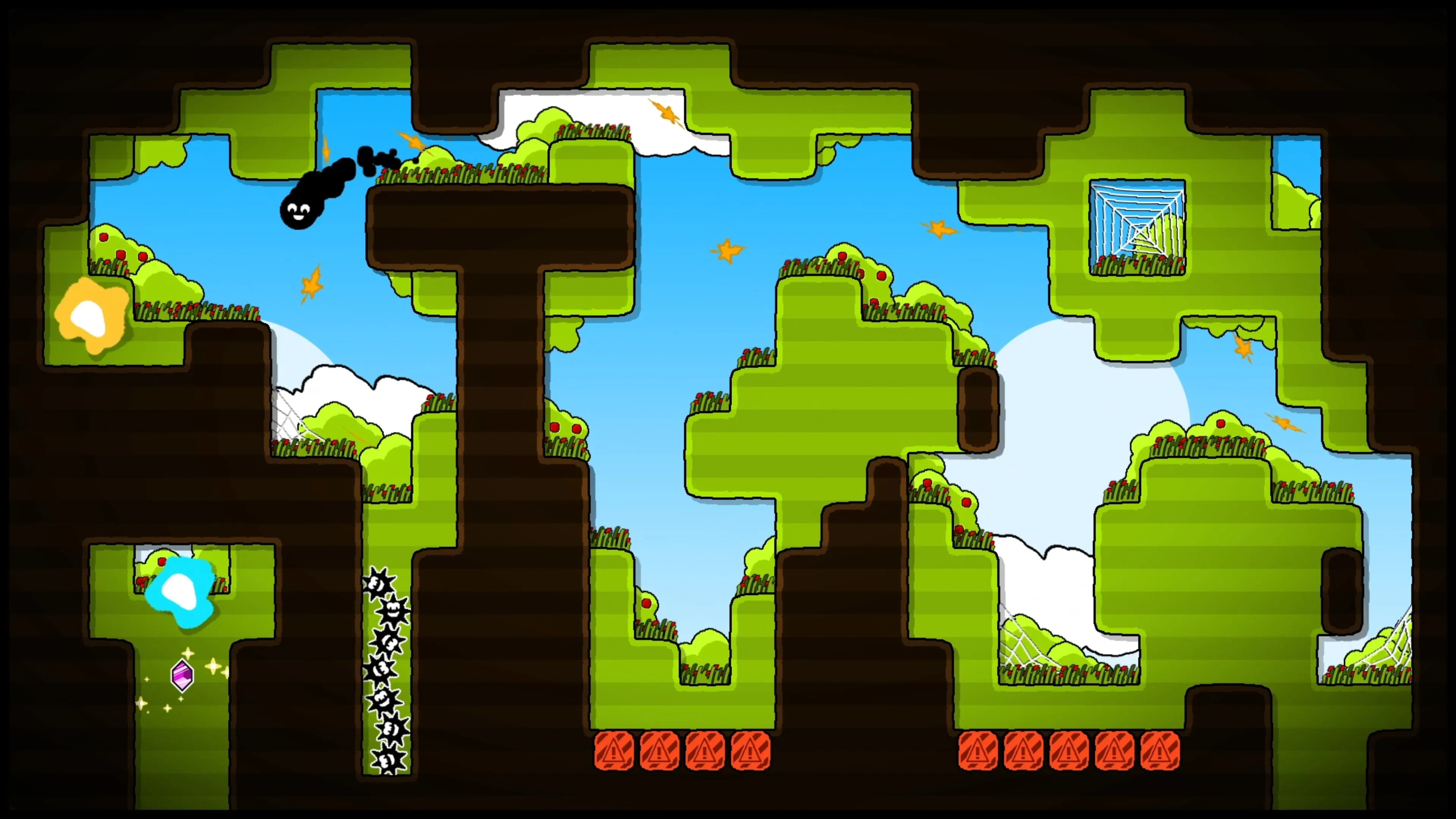 Ayuda a este pequeño desastre a alcanzar el cristal brillante en todos los niveles de este explosivo puzle de plataforma.