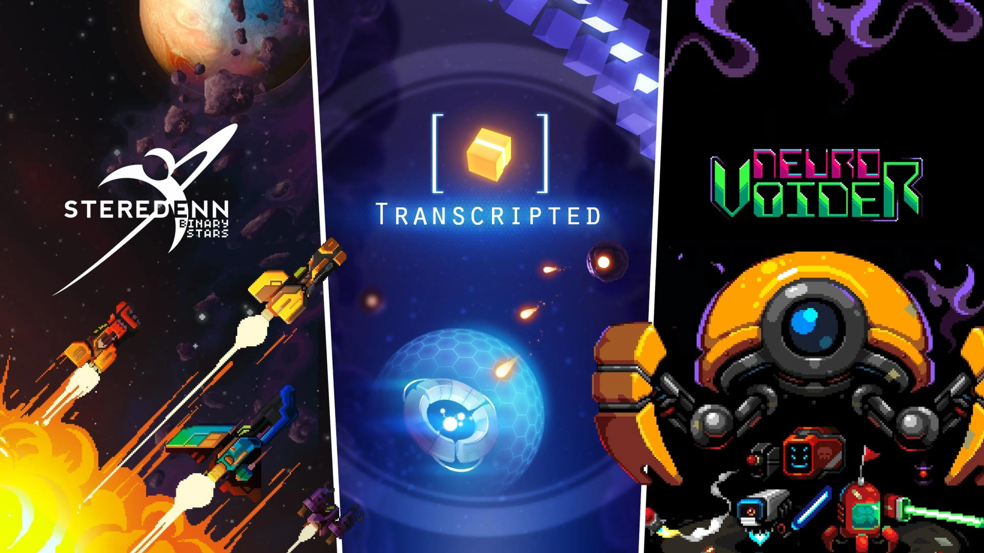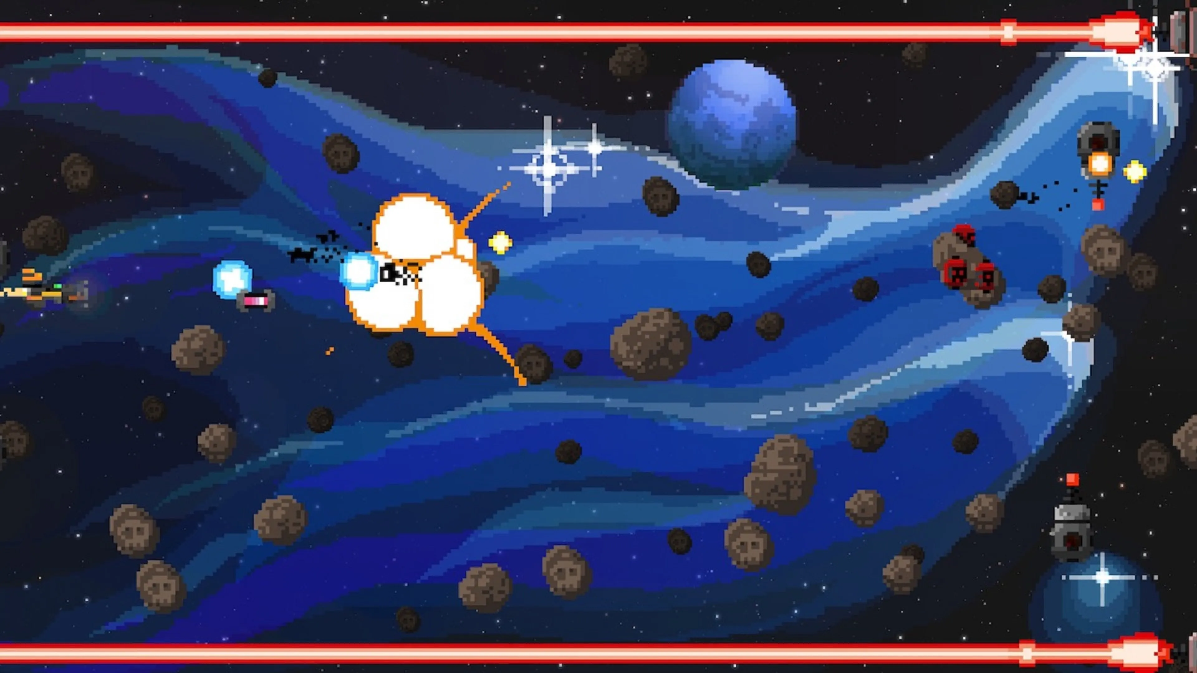 Steredenn: Binary Stars mezcla shoot'em up y roguelike y lo envuelve todo en grandes píxeles para librar épicas batallas contra temibles jefes.