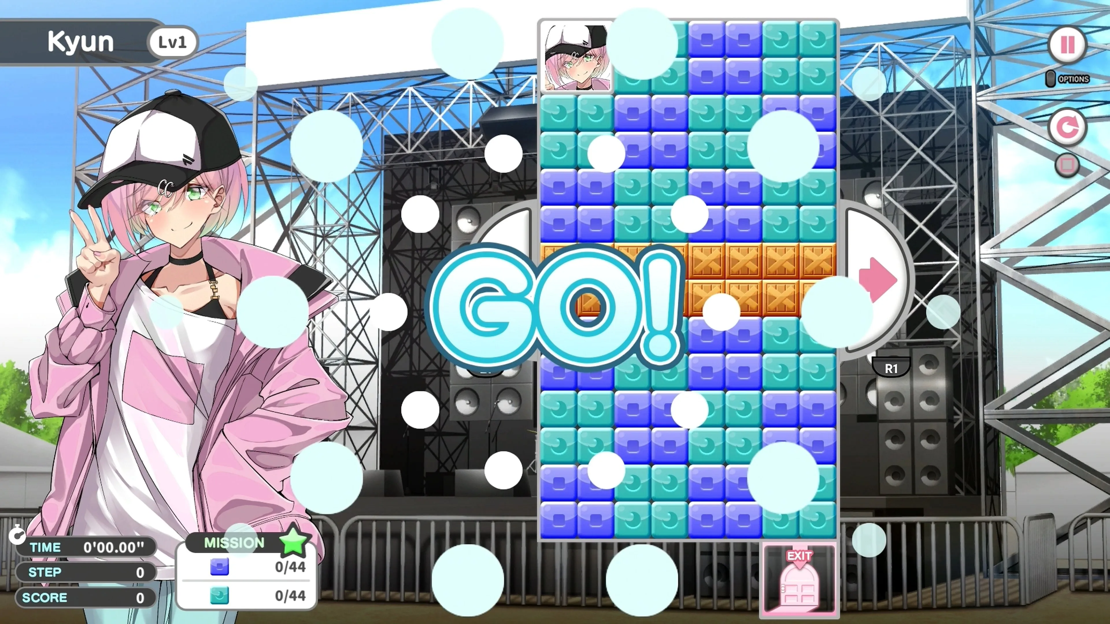 Desliza bloques a izquierda y derecha para formar grupos de un solo color, que al ser eliminados permitirán que los íconos de personajes caigan hacia las salidas ubicadas en la parte inferior de la pantalla. Algunas salidas deben ser desbloqueadas antes de poder usarlas, ¡y a medida que la dificultad aumenta se van agregando nuevas mecánicas de bloques! También hay un modo de desafío que te permitirá seguir jugando para pasar más tiempo junto al atractivo elenco del juego. Utiliza los puntos que ganes para desbloquear trajes y fondos en el orden que quieras, y luego úsalos para armar tus propios dioramas personalizados en el modo Vestidor.