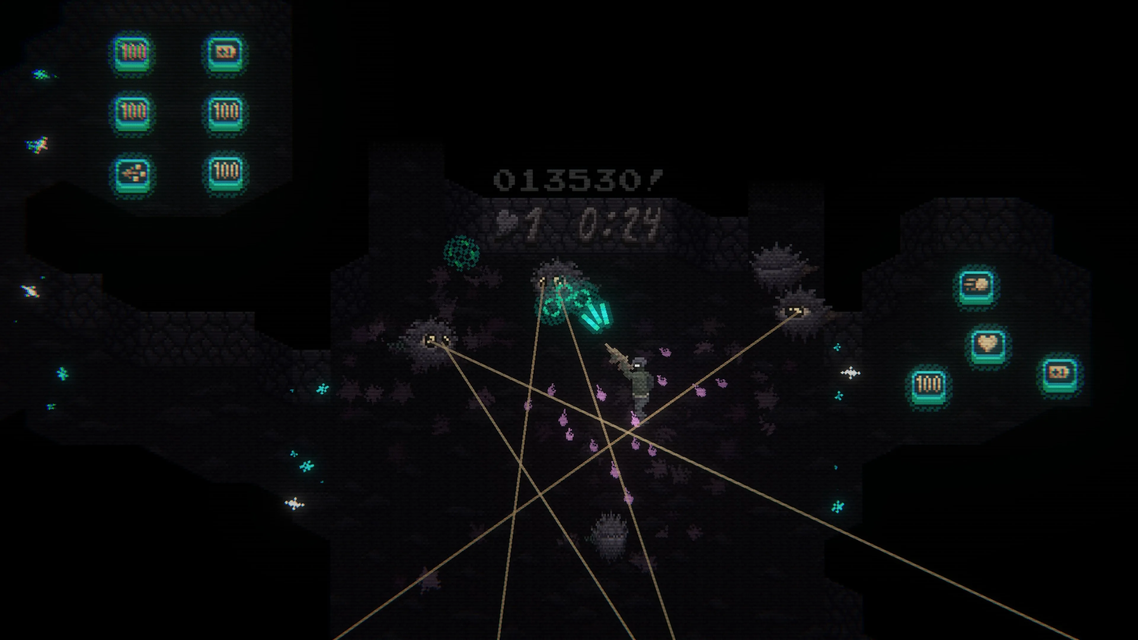 Usa los controles intuitivos de dos joysticks y muévete por entornos con vista de arriba hacia abajo con determinación y velocidad mientras eliminas todas las amenazas entrantes. ¡Recolecta potenciadores para mejorar tus armas sobre la marcha! Cuanto más rápido derrotes a los enemigos, mayor será tu puntuación. Así podrás desafiar las tablas de clasificación en el modo de supervivencia. ¿Cuánto tiempo puedes permanecer en la lucha?