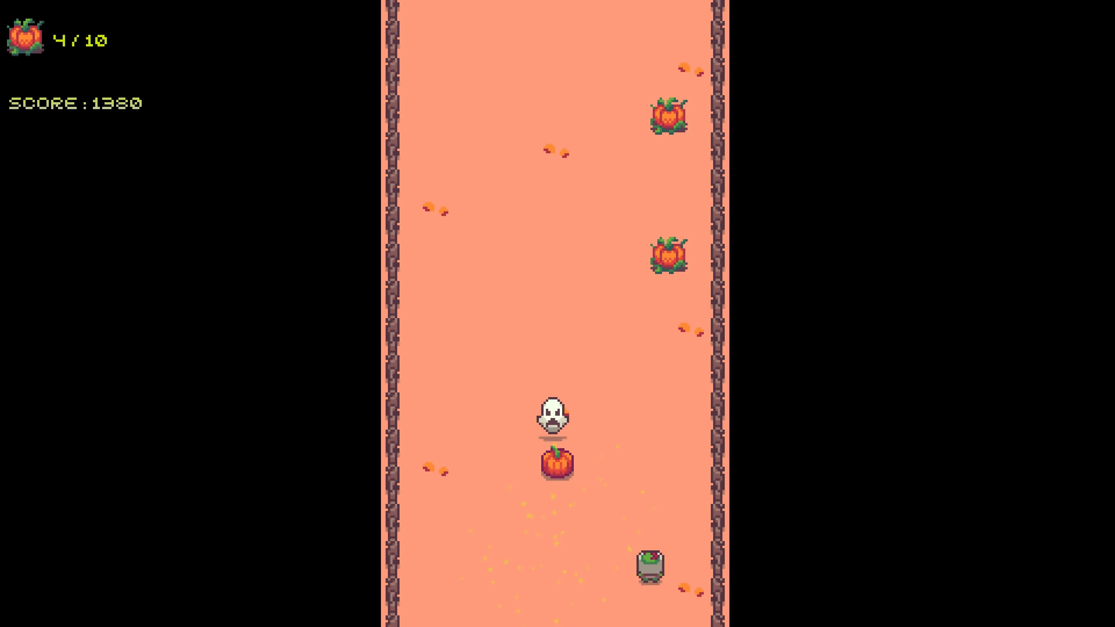 Elige a tu personaje — un zombi juguetón, un vampiro travieso o un payaso pícaro — y avanza recolectando tantas calabazas como puedas. ¡Cuidado con los fantasmas astutos: si los tocas, perderás puntos!