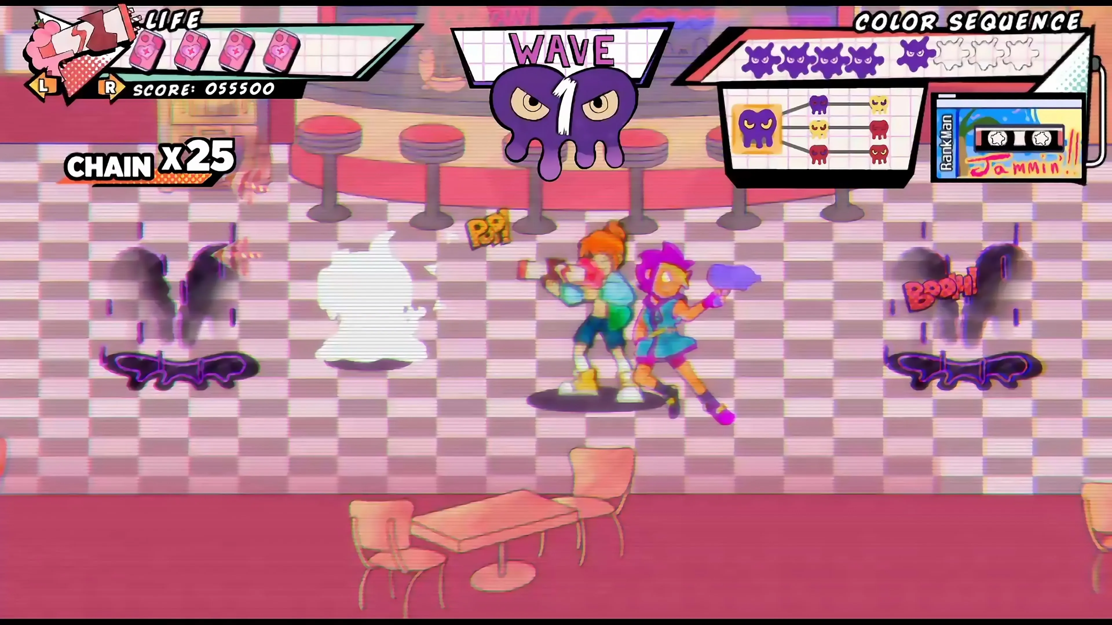 Únete a Ria Carbon y a Gin, la antigua heroína de PopSlinger, en una fantástica aventura para salvar su planeta de las fuerzas de otro mundo usando sus mágicas pistolas cargadas de refresco mientras bailas al ritmo de una banda sonora original, dinámica y funky que reacciona según tus acciones.