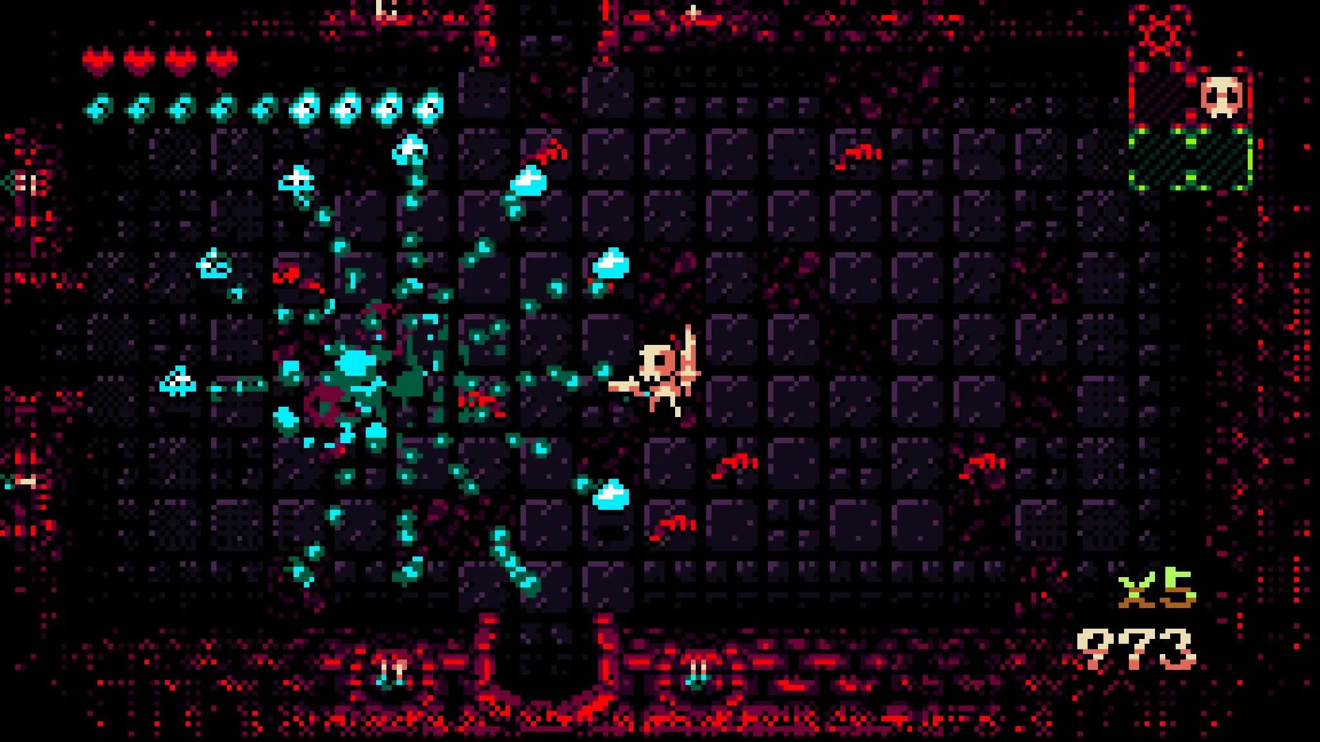 Visita las Llanuras Óseas, los Jardines de la Carne y otros lugares encantadores a lo largo de un vibrante paisaje infernal de píxeles