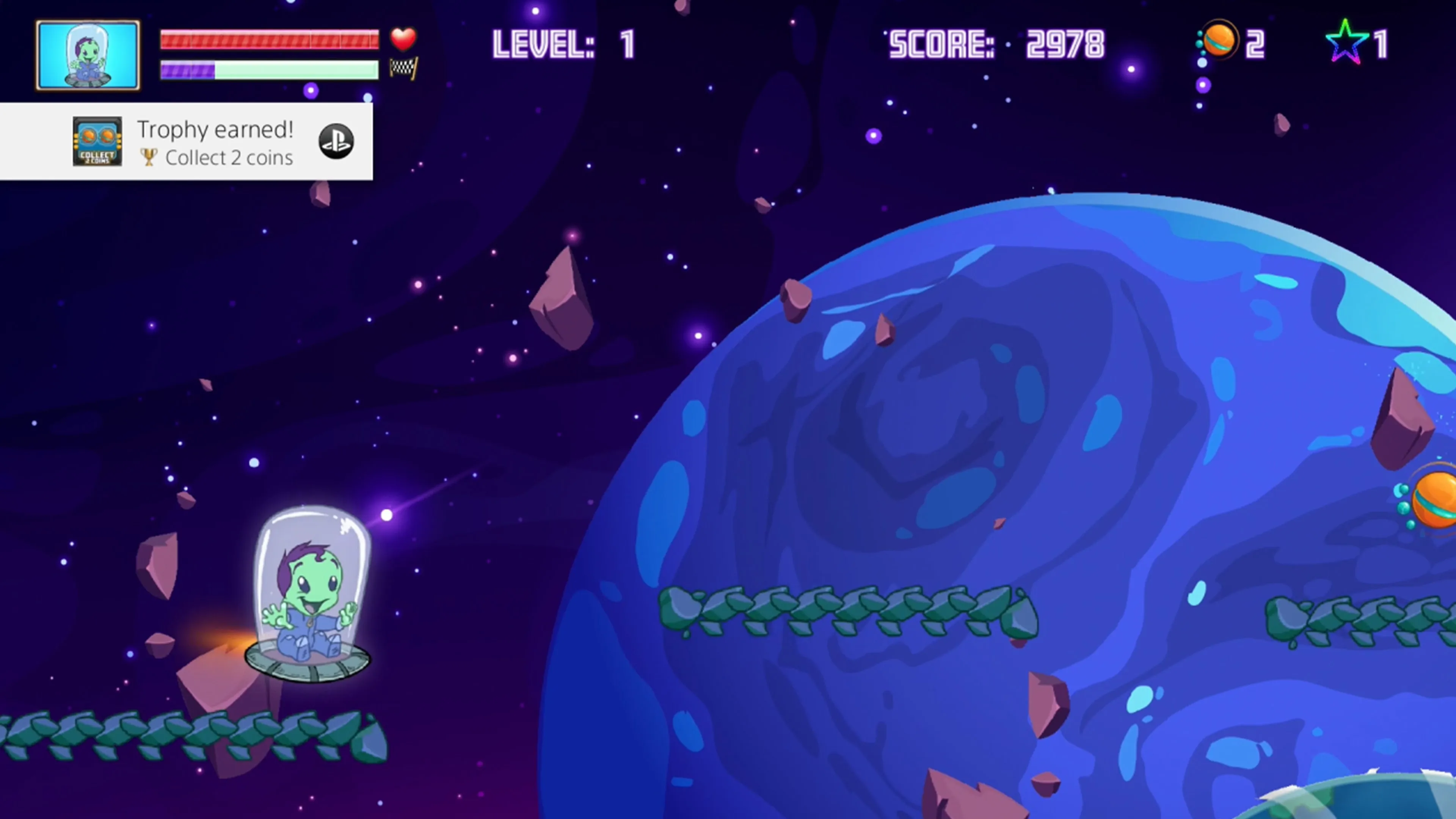 Space Run es un juego arcade de estilo Runner donde el usuario salta y corre a través de obstáculos para llegar a la línea de meta. Juega y sobrevive a través de 12 niveles mientras completas tu viaje épico por el espacio como un bebé marciano.