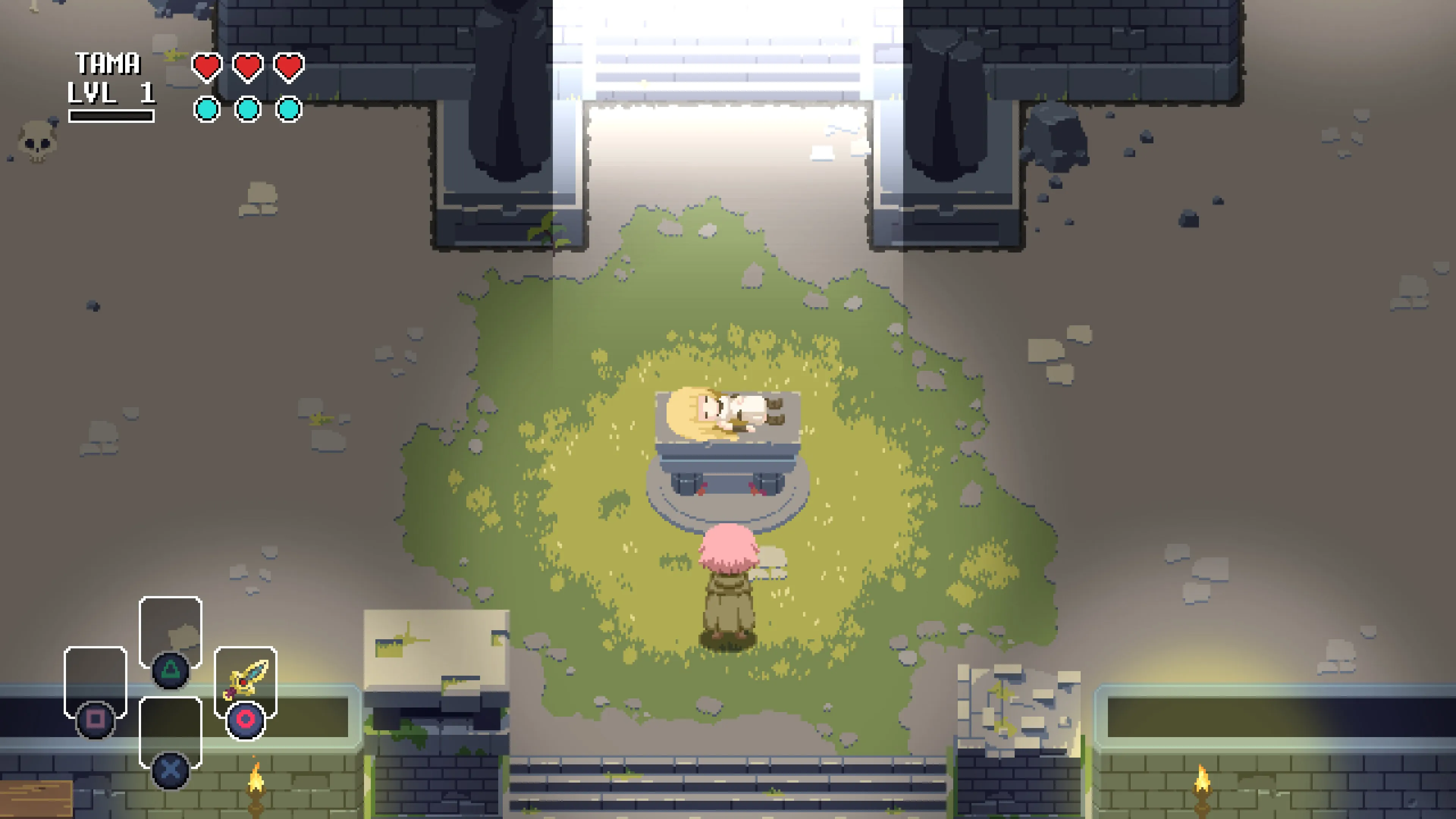 Llena de desesperación, Tama entrará en la mazmorra con el objetivo de conseguir el poder prohibido de la nigromancia, ignorando los peligros que acechan en las sombras.