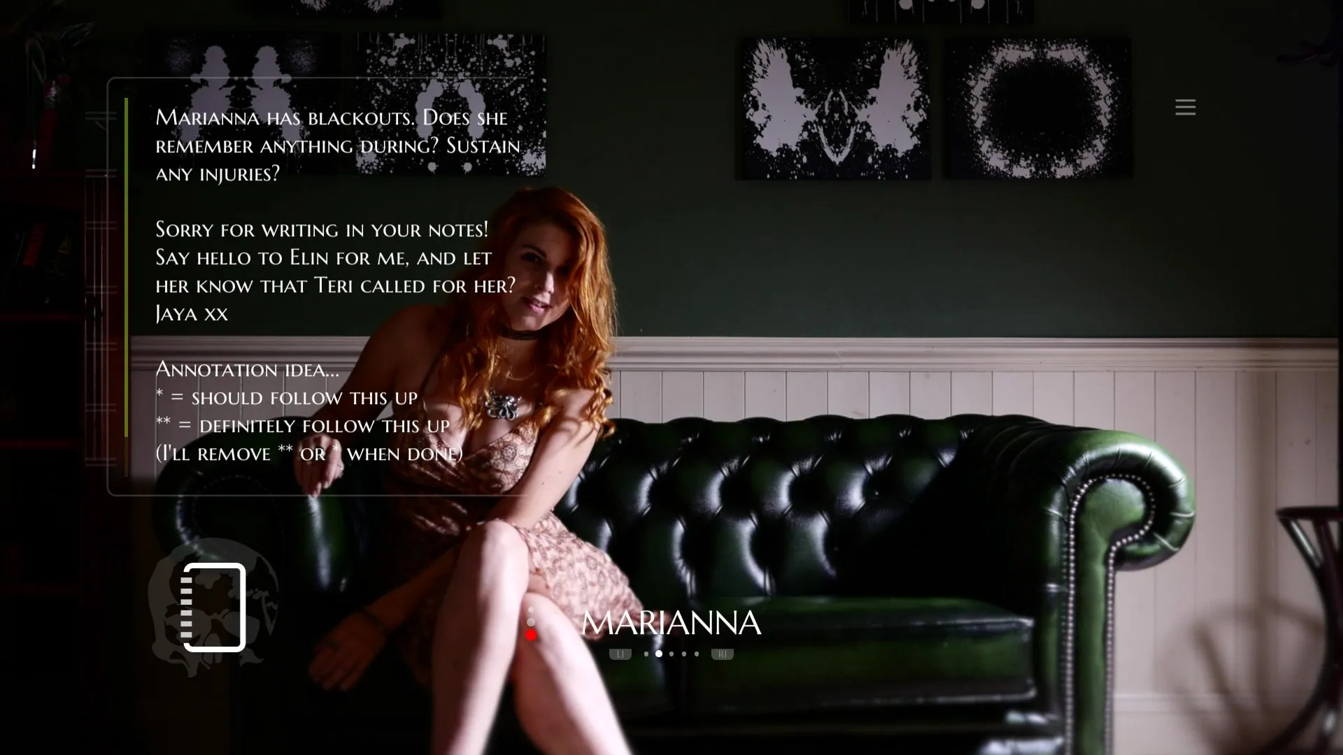 Te convertirás en un psiquiatra que intenta resolver un asesinato mientras sigues ejerciendo tu trabajo tratando a los inusuales pacientes del recientemente fallecido Dr. Dekker. Pregunta todo lo que necesites y recopila información para descubrir la identidad, generada al azar, del asesino y poder descifrar el caos que ha ocasionado.