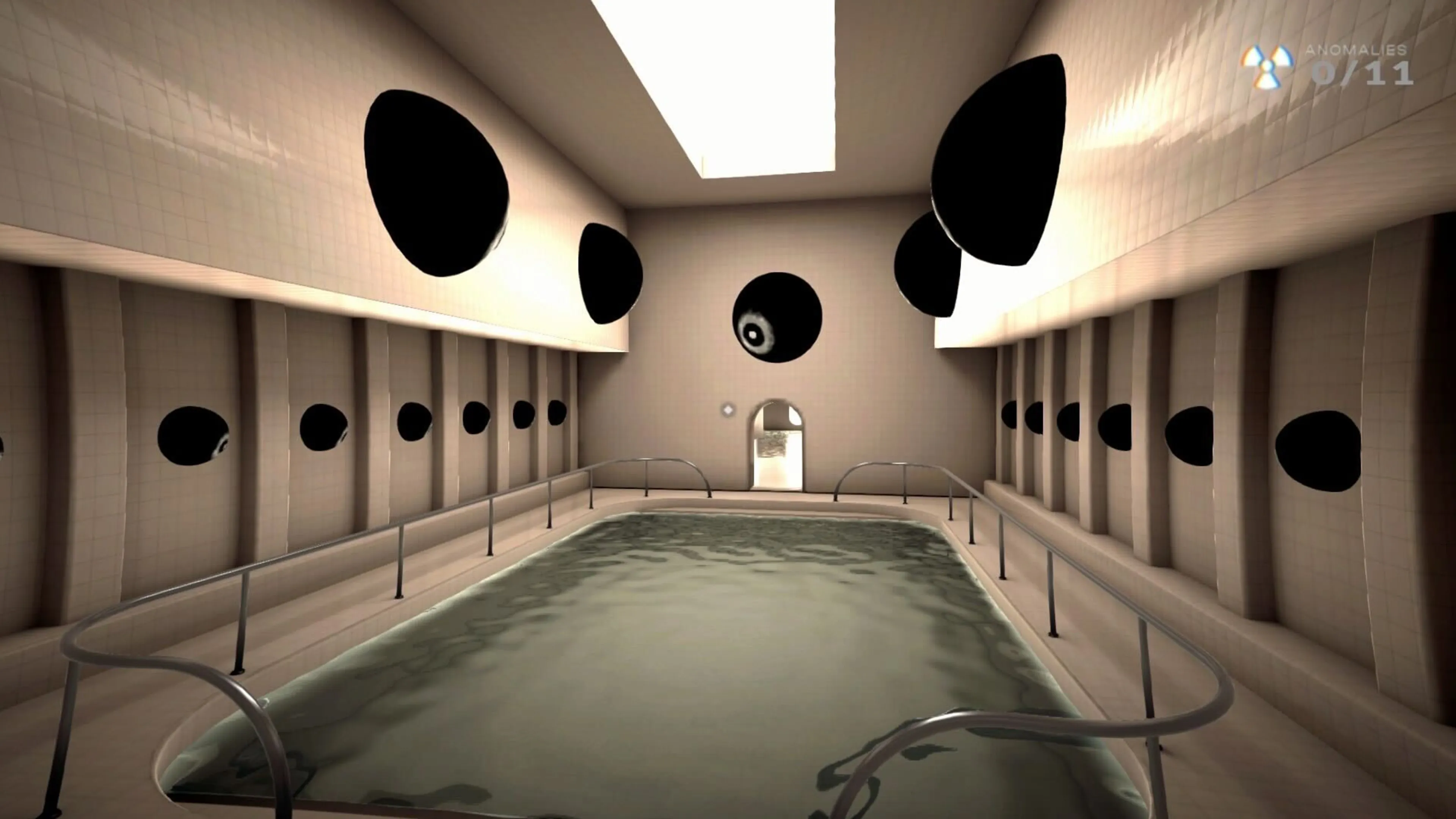 Adéntrate en un laberinto tenebroso de piscinas olvidadas, pasillos resonantes y anomalías acechantes. El silencio es abrumador, pero si escuchas atentamente, escucharás susurros bajo el agua… algo te observa.