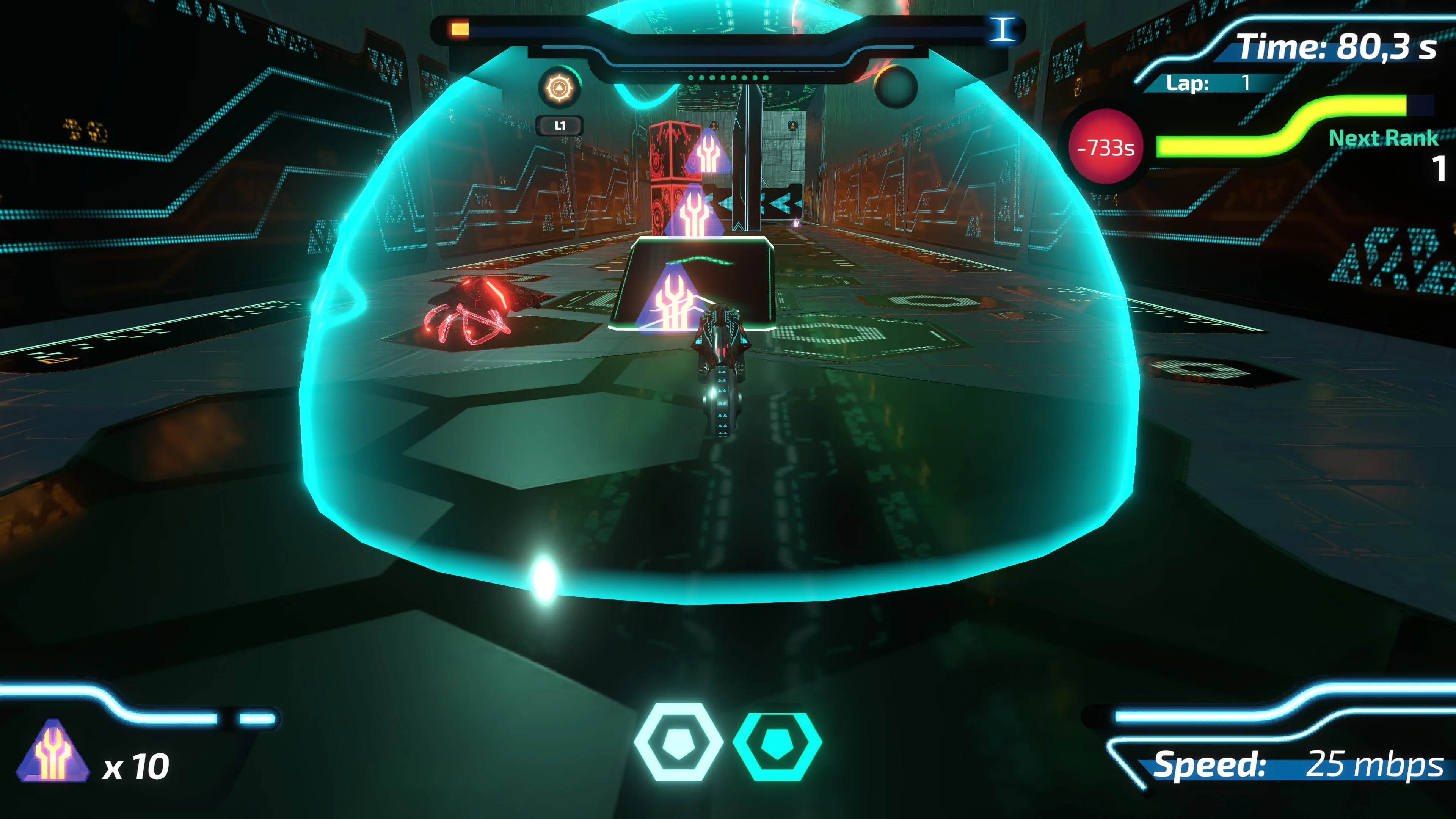 Más de 300 variaciones de obstáculos que se distribuyen aleatoriamente y se vuelven más difíciles con cada vuelta darán lugar a infinitas variaciones de la pista. ¡Y tenga cuidado, no todos los obstáculos son estáticos! También hay vehículos Virus que circulan contigo por la pista, intentando acabar con tu existencia.