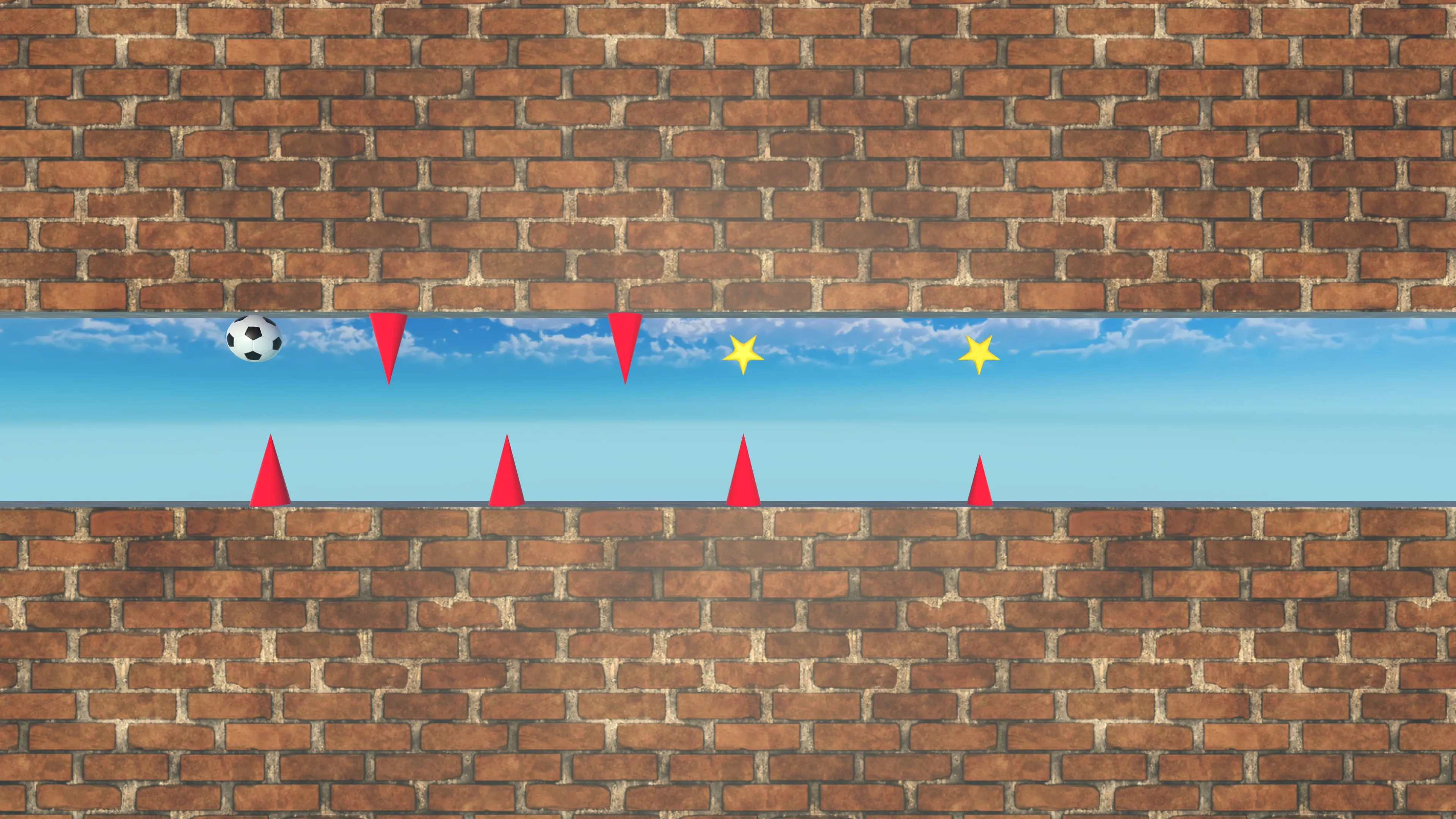 Guía tu bola a través de un estrecho túnel de ladrillos lleno de peligrosas púas rojas y obstáculos traicioneros. Salta en el momento adecuado, evita trampas mortales y recoge estrellas brillantes por el camino para aumentar tu puntuación. Cada segundo cuenta mientras superas tus límites para permanecer con vida más tiempo y acumular puntos.
