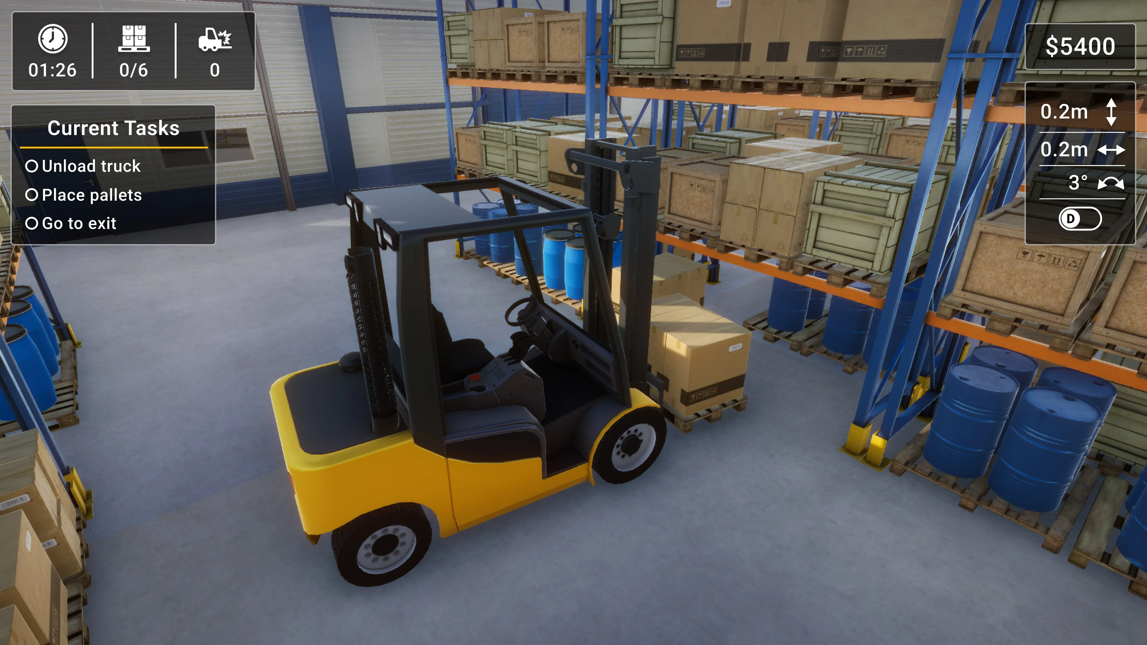 Toma el control de poderosos montacargas y ejecuta maniobras precisas. Domina el manejo eficiente de carga y trabaja para convertirte en un experto en montacargas.