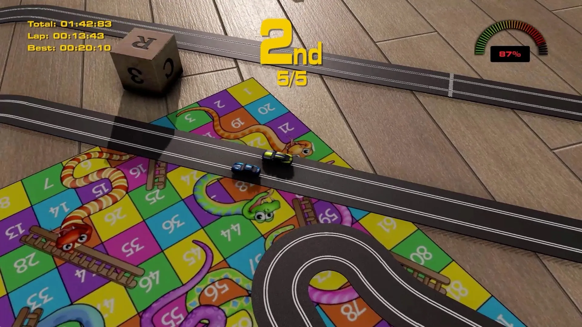 Combínalo con tus propios diseños de pistas. Elija piezas de pista y monte nuevos y emocionantes circuitos o elija uno de los doce circuitos de carreras mundiales preconstruidos incluidos.
