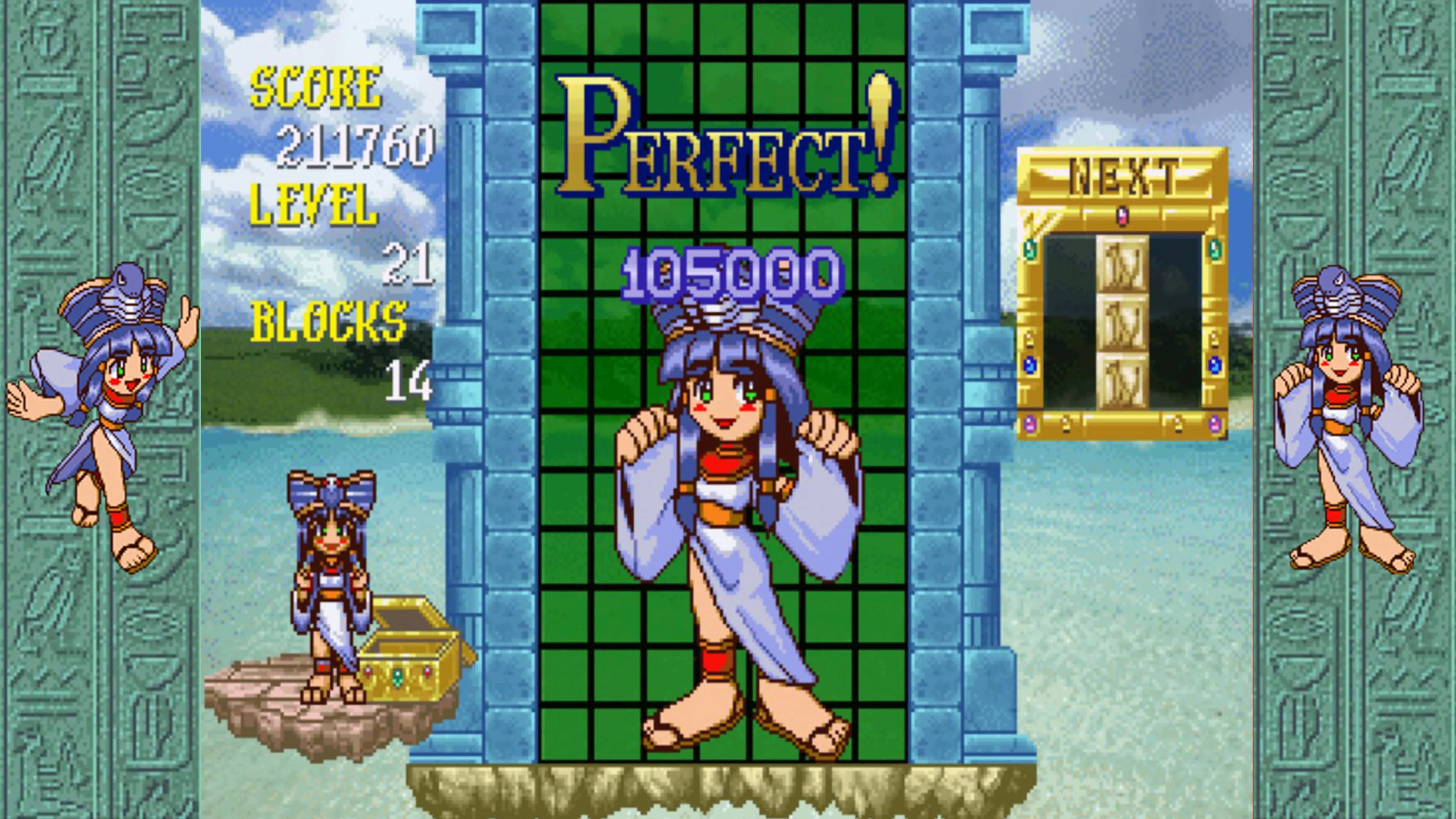 En el modo Arcade, los jugadores eliminan las piedras, tesoros, ataúdes y momias que van cayendo organizando cierres o eliminado líneas con el objetivo de obtener puntos. Dos jugadores también pueden enfrentarse el uno contra el otro.