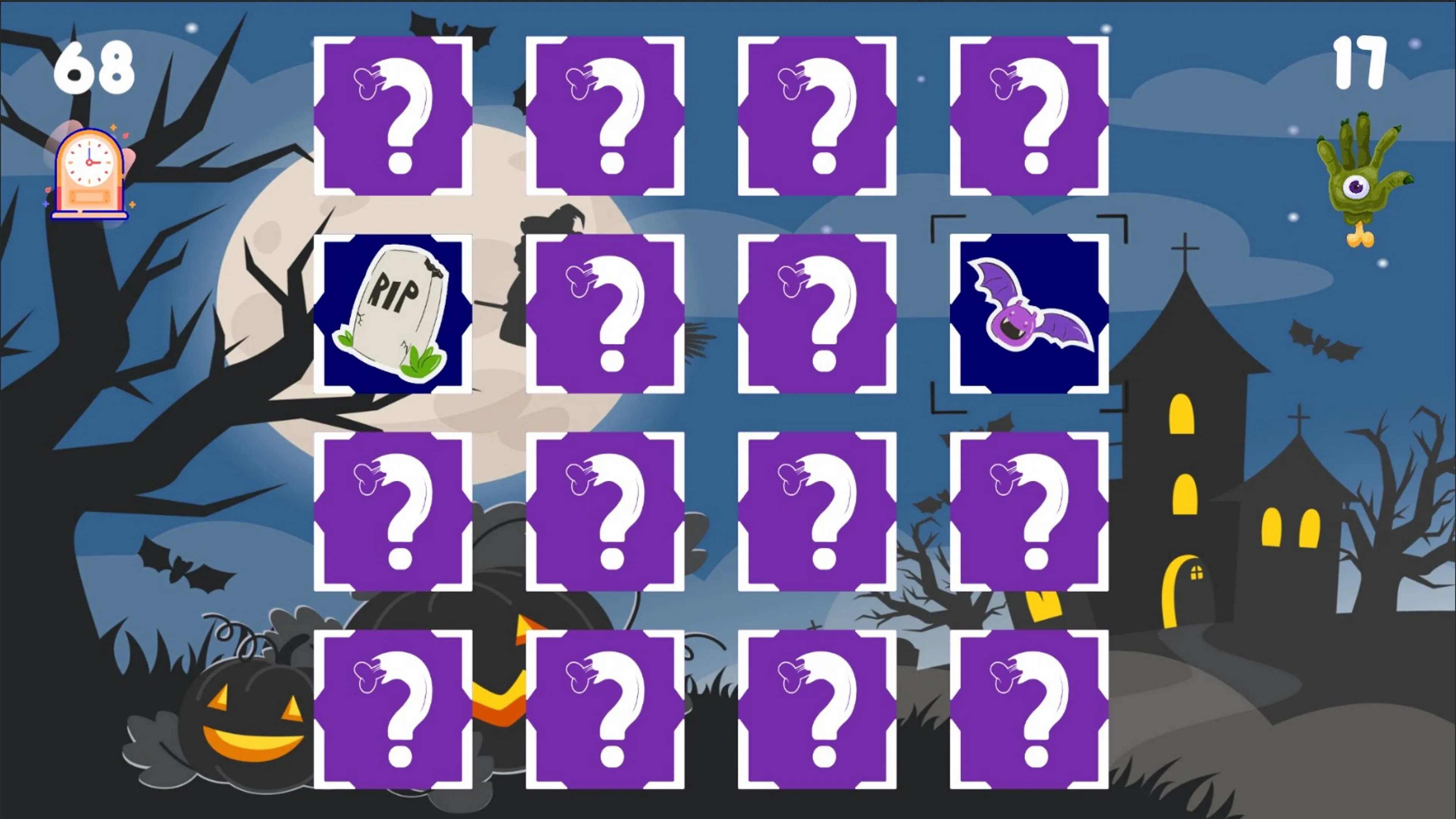 Amongst the cards featuring ghosts, witches, cauldrons, and more, you'll need to exercise your memory and concentration to uncover the perfect matches. You can start with Easy for a pleasant introduction, but true mastery awaits you in the challenging Expert mode.