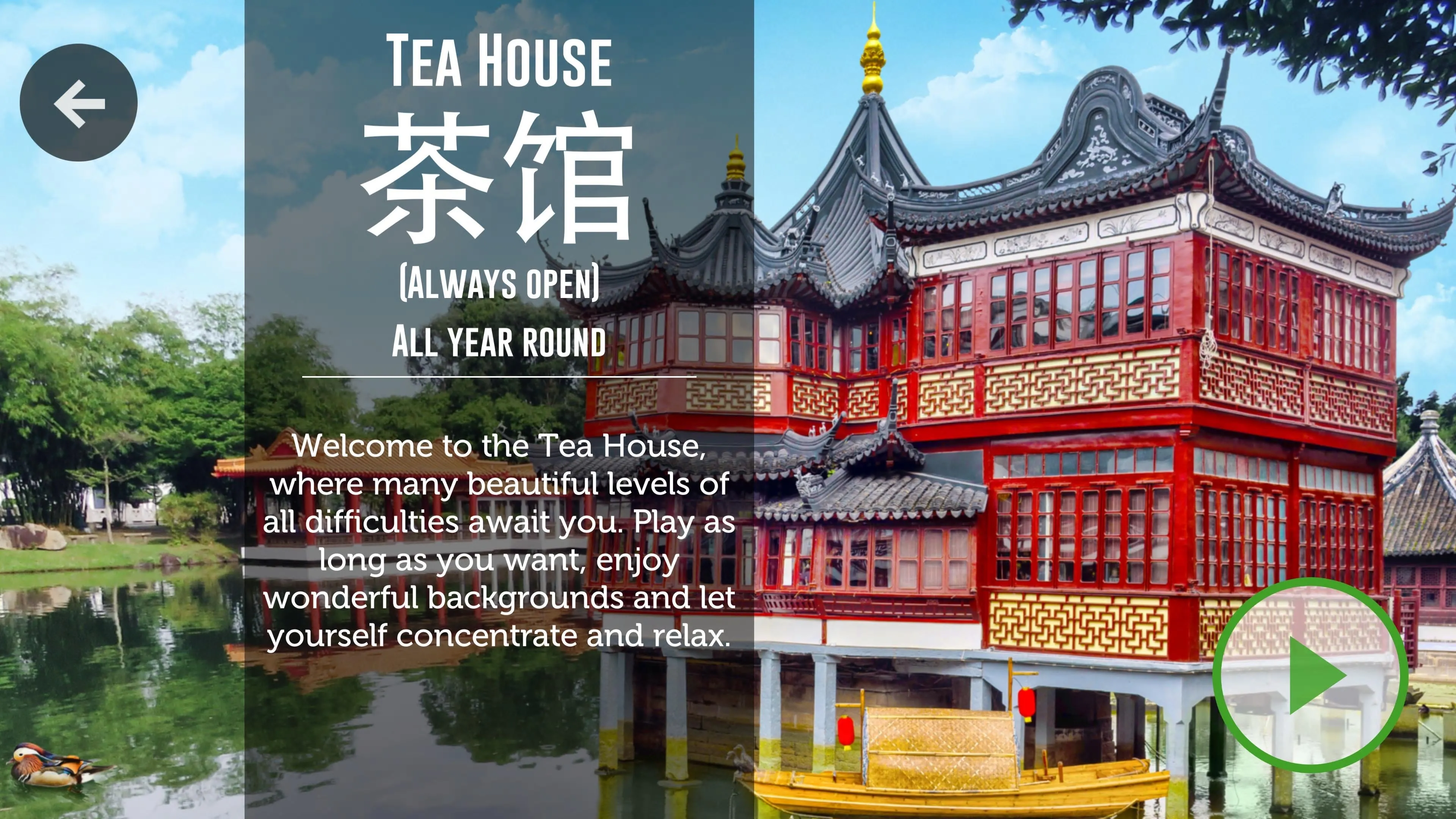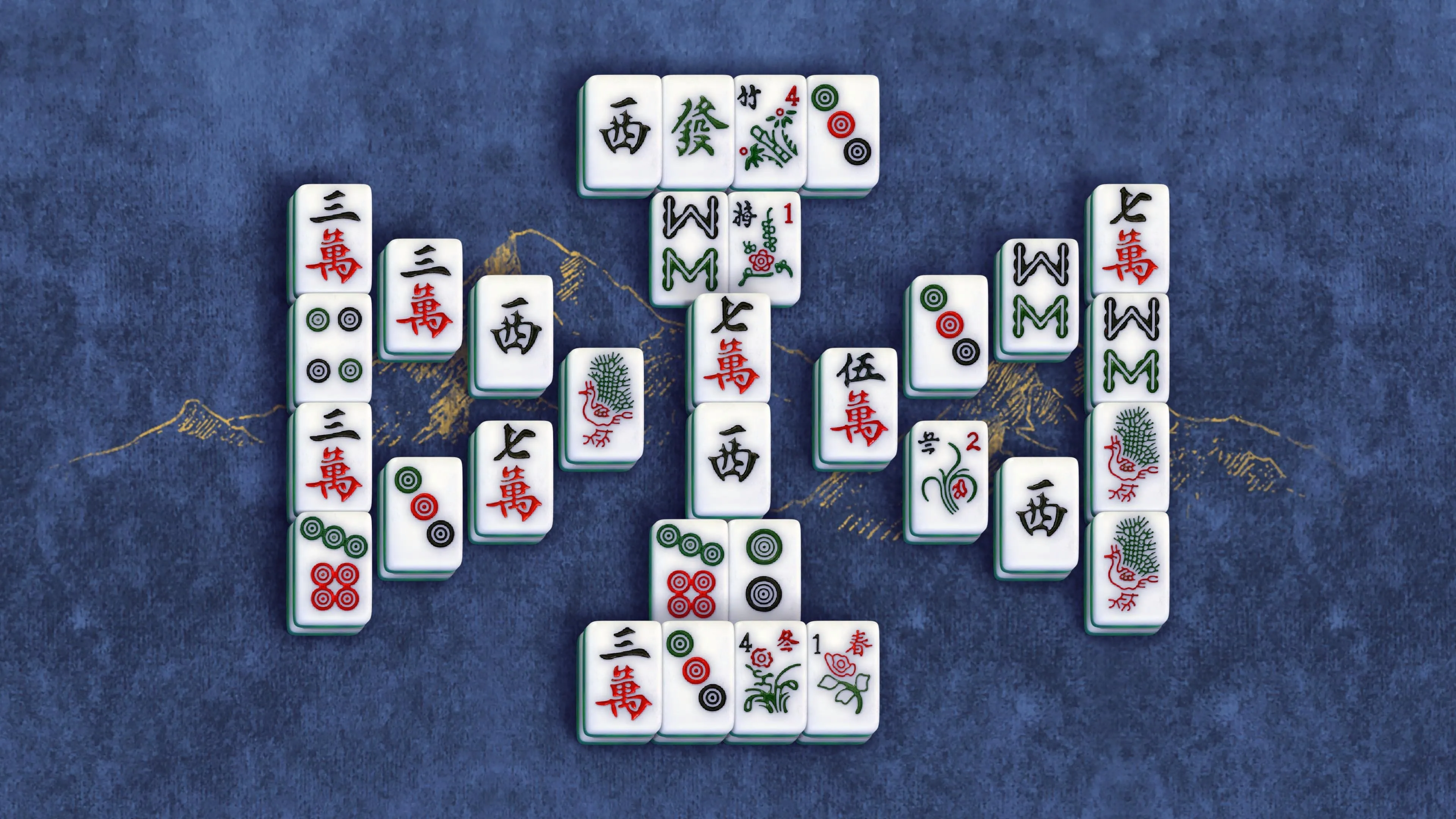 Mientras la pantalla principal presenta la estación actual, los juegos de Mahjong se muestran sobre 24 fondos decorados que cambian bellamente.