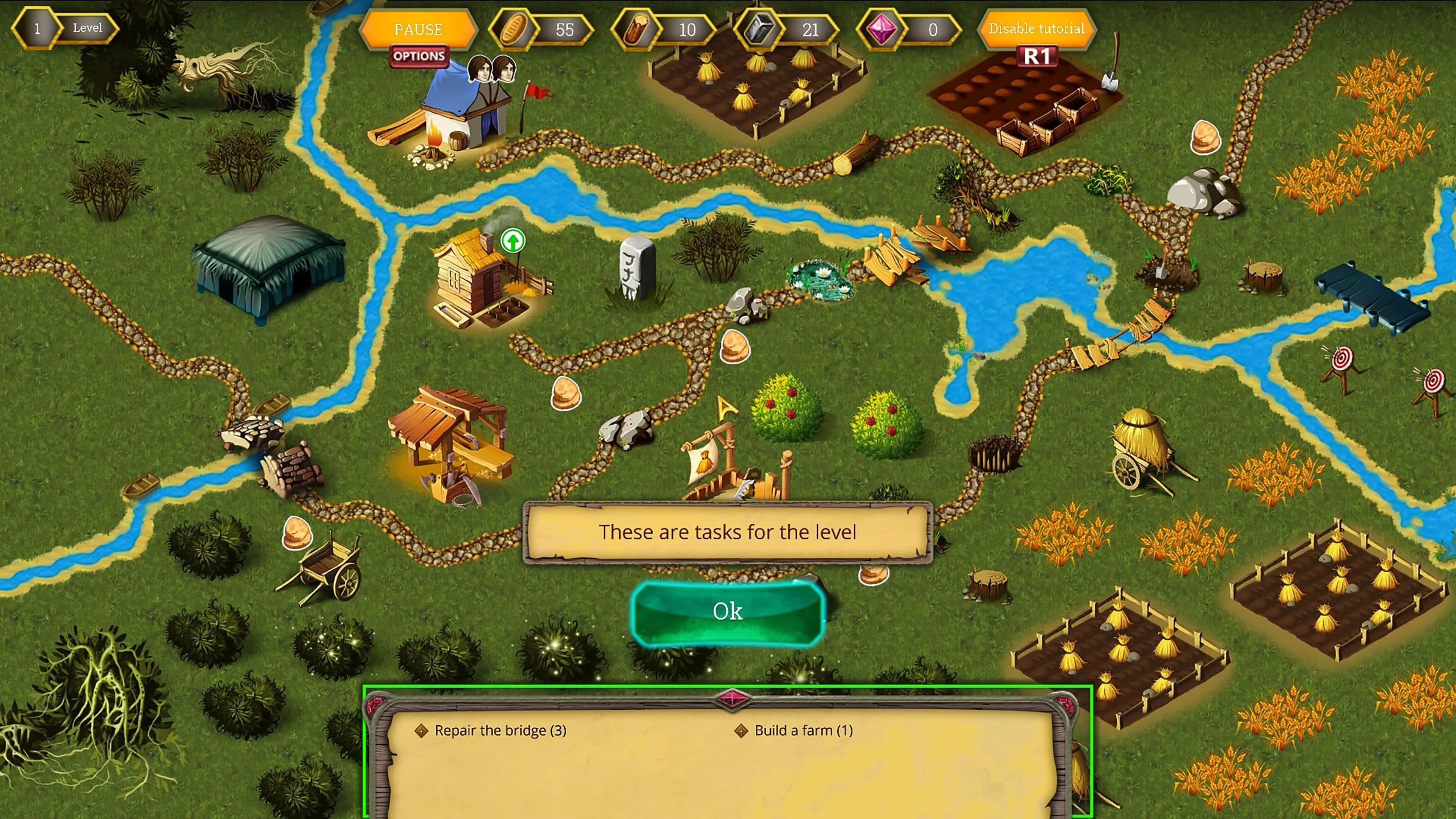 La gestión del tiempo es un género en el que debes cosechar cultivos, extraer piedra, procesar madera y asignar recursos de manera inteligente en tiempo real para completar los objetivos de nivel en el tiempo asignado. A medida que avanzas en el juego, puedes mejorar los recursos disponibles con las recompensas que ganes.