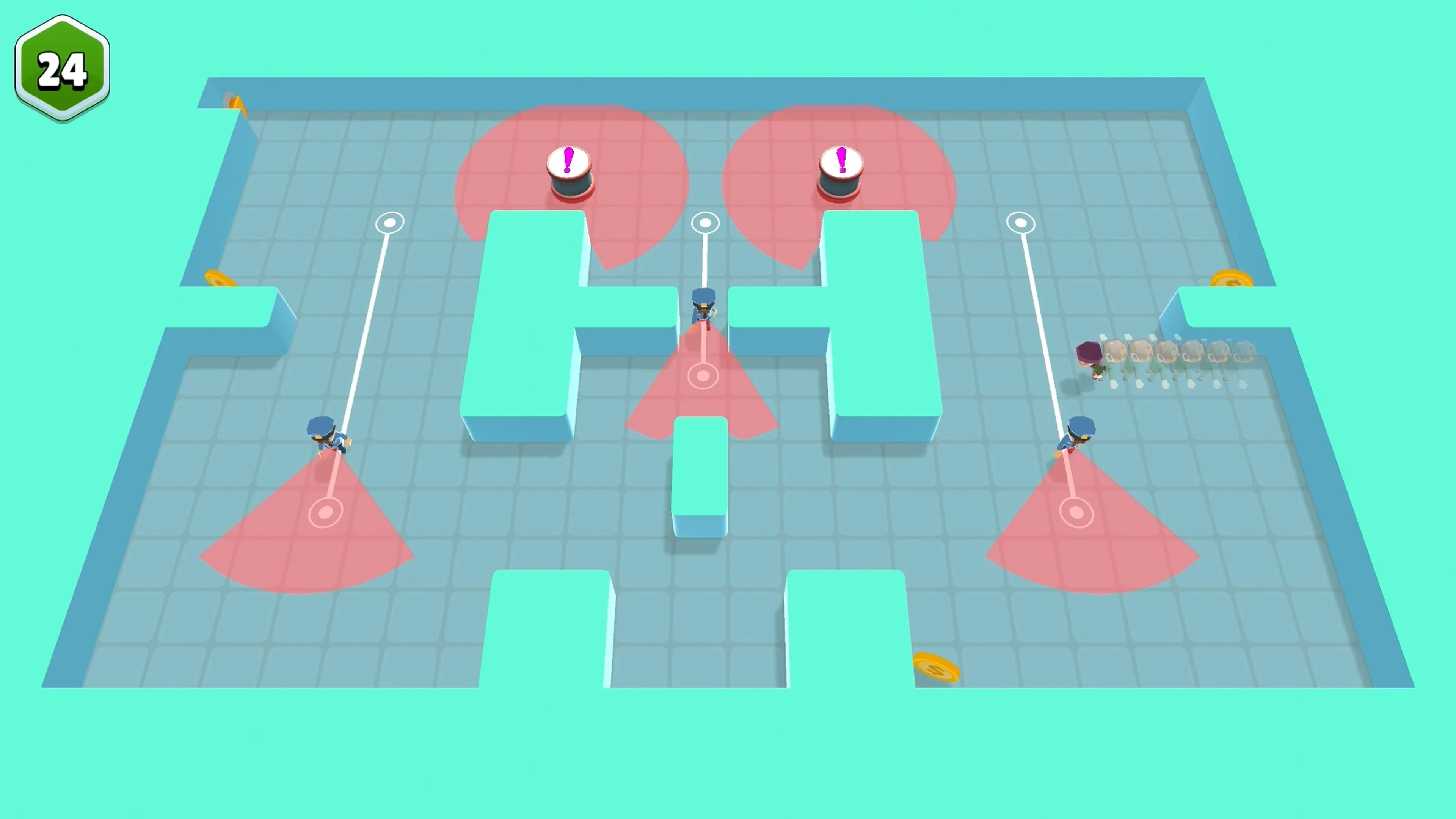 Asume el rol de un escurridizo ladrón y pégate a las paredes de cada habitación para recoger las monedas sin que te vean los guardias. Recorre docenas de niveles de una sola pantalla presentados en un encantador estilo 3D minimalista.