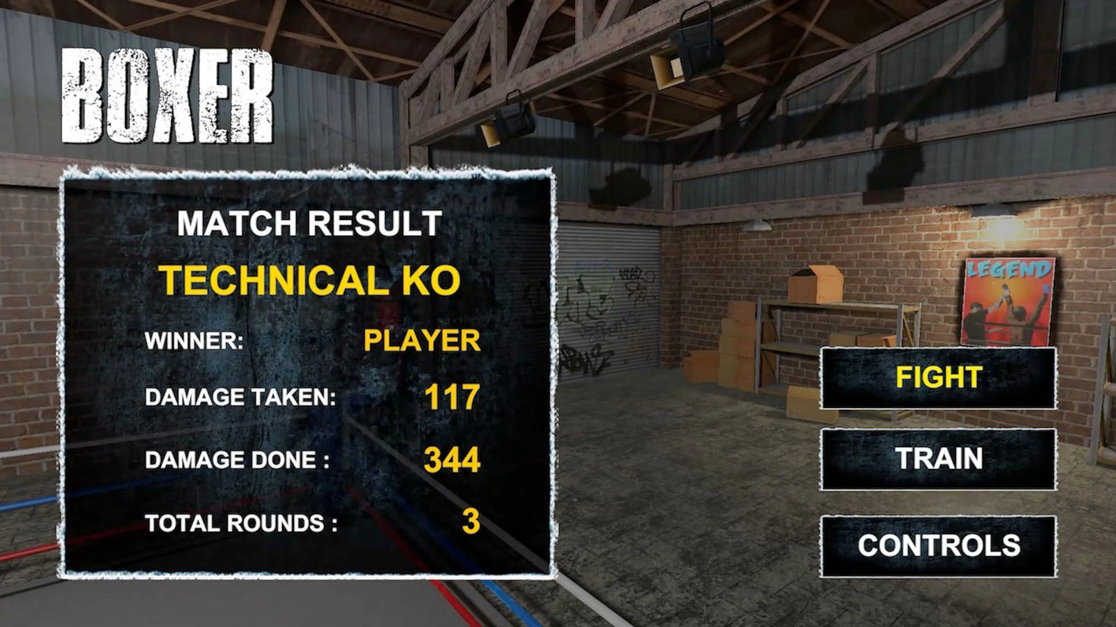Pelea tres rondas contundentes contra uno de los siete (Ai) boxeadores rivales con inteligencia artificial sin ser noqueado.