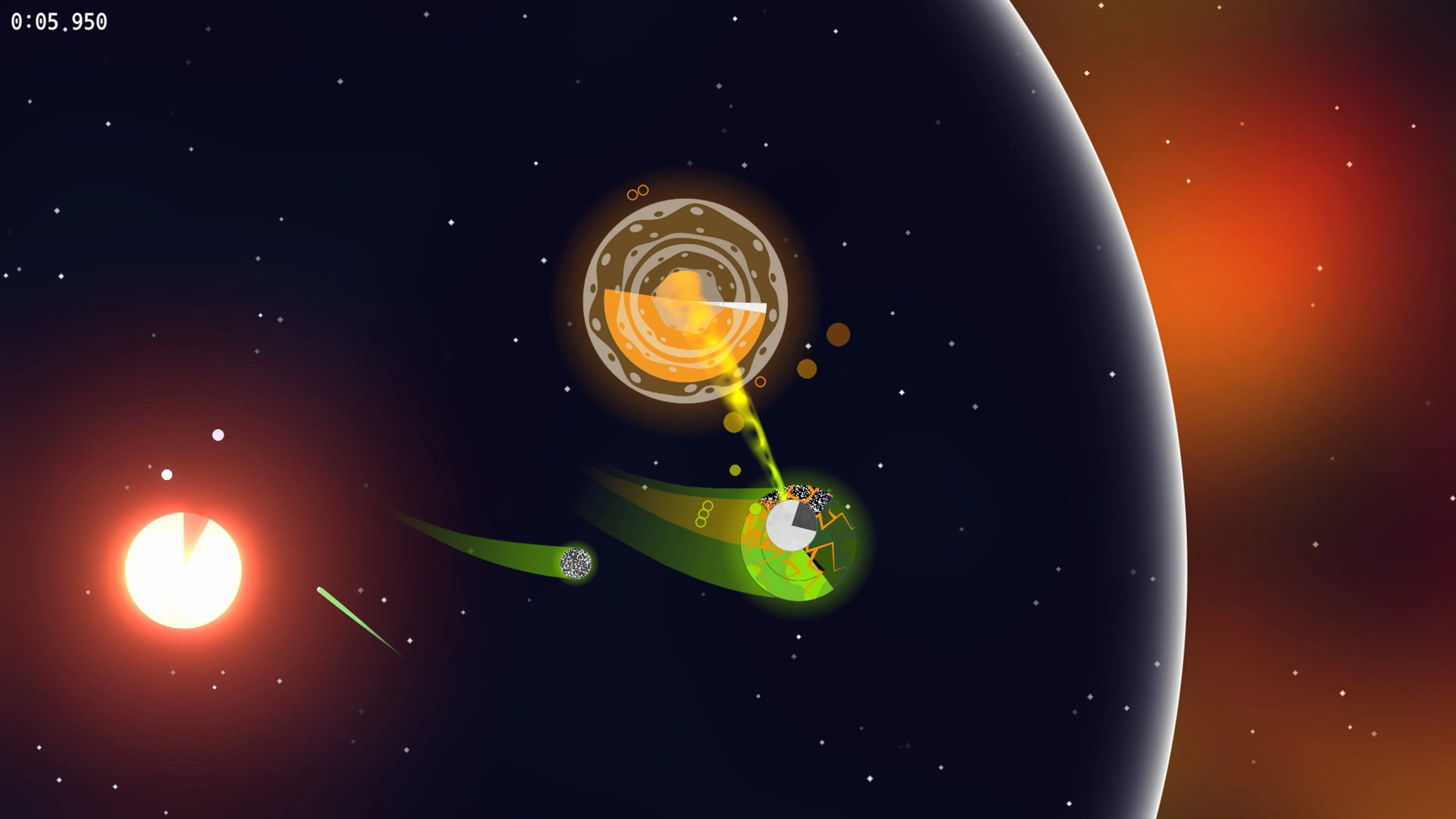 - Limpieza: Destruye todos los asteroides en el mapa y usa el movimiento para superar los tiempos objetivo.