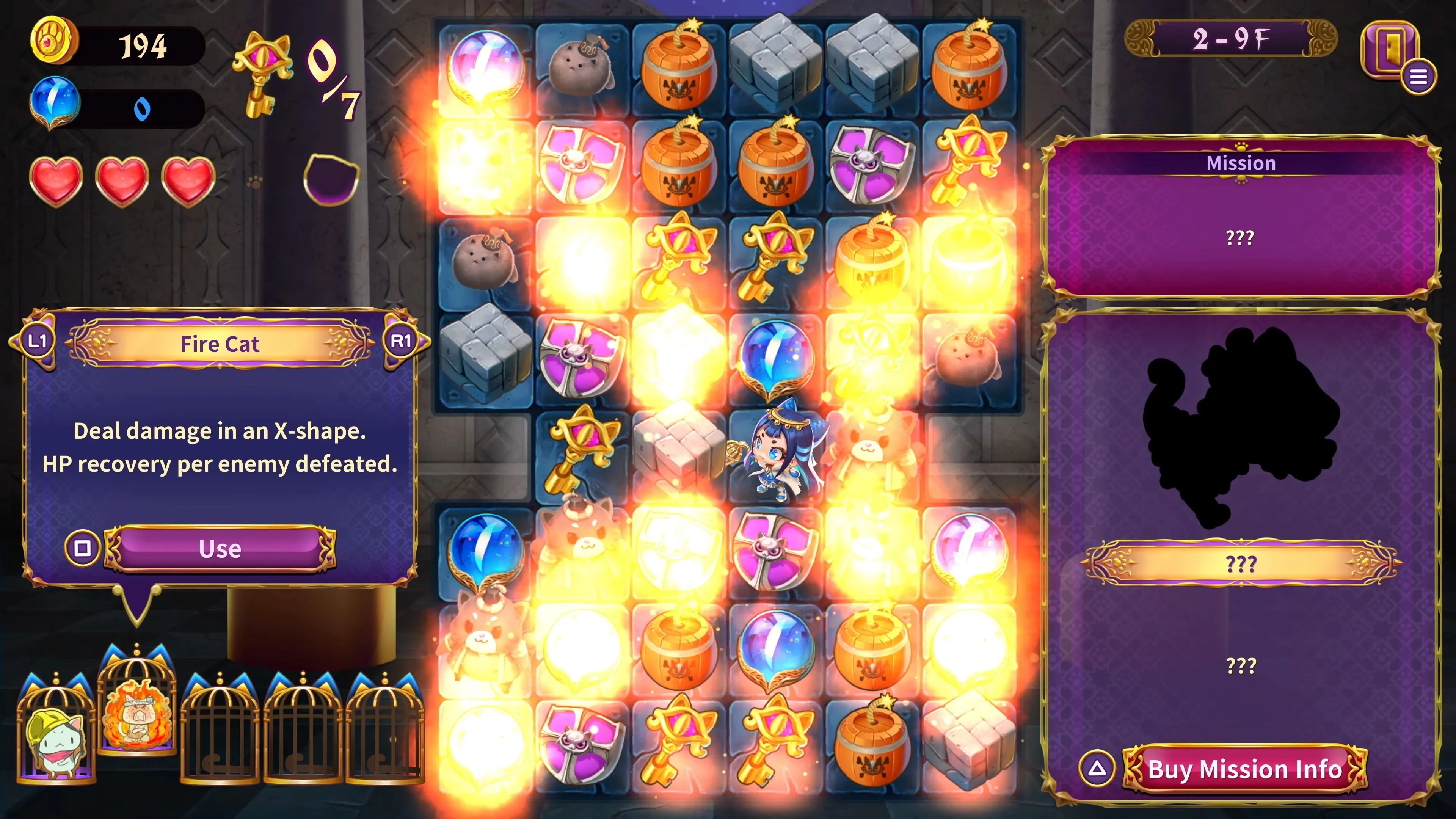 Cada etapa tiene un "Gato Mágico" oculto con poderes especiales.