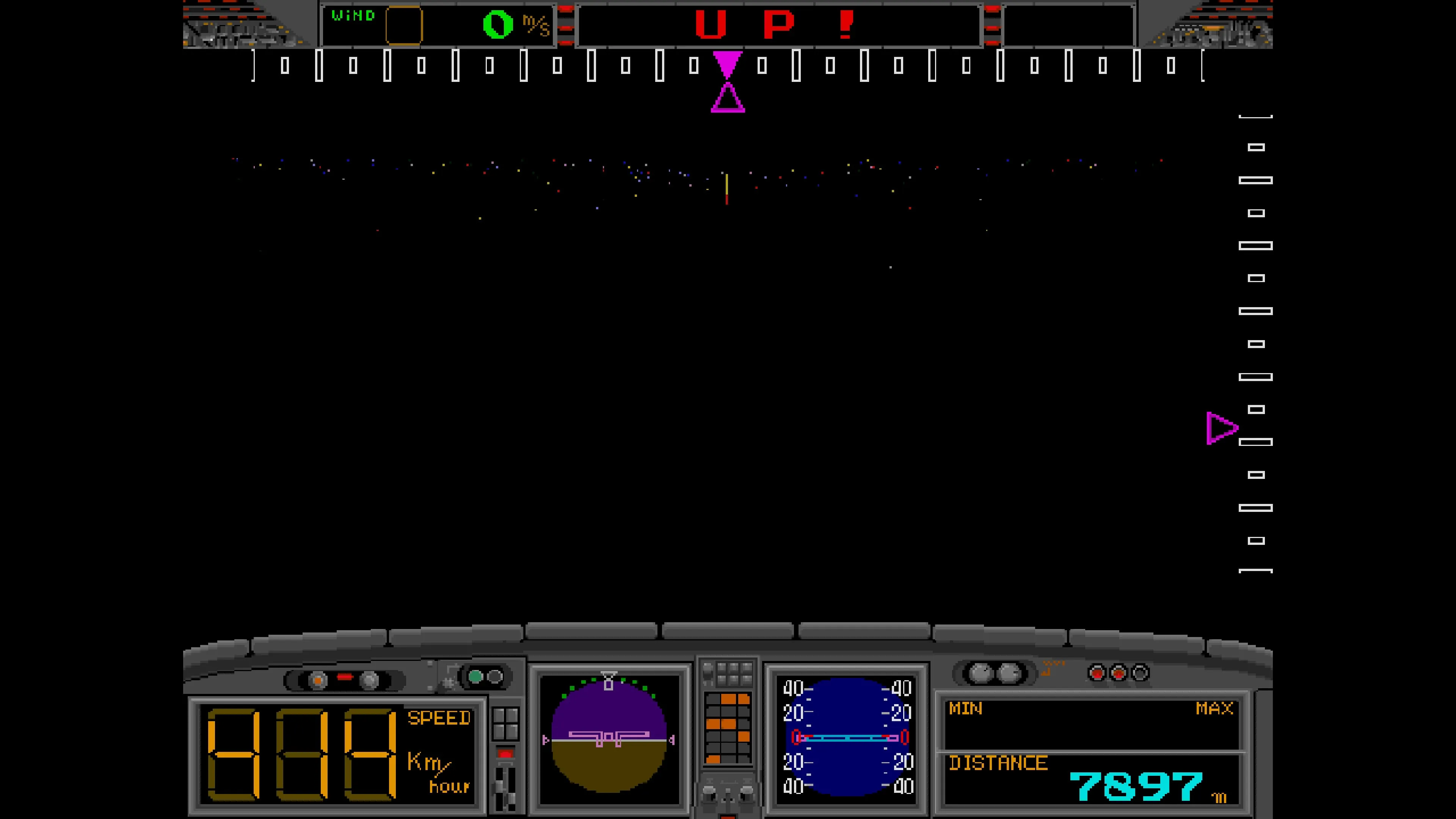 Tú controlas una aeronave que surca el cielo nocturno con el objetivo de aterrizar de forma segura en el aeropuerto.