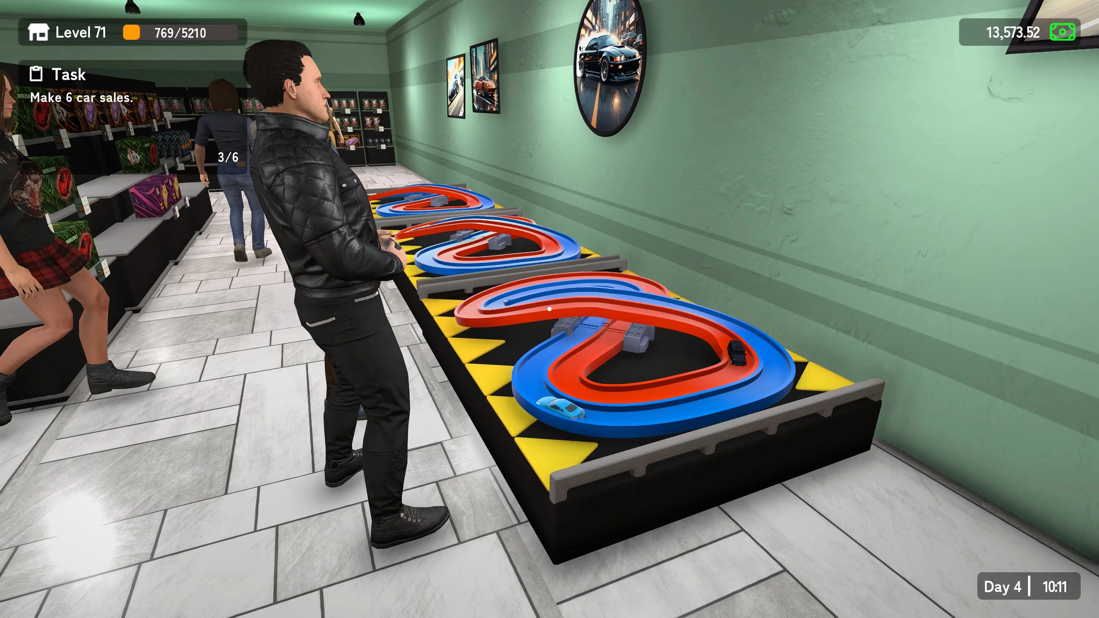 Organízalo todo y añade funciones inteligentes para facilitar las compras. Crea zonas para comprar, intercambiar y exponer coches. Añade espacio para las carreras y ¡que gane el mejor!