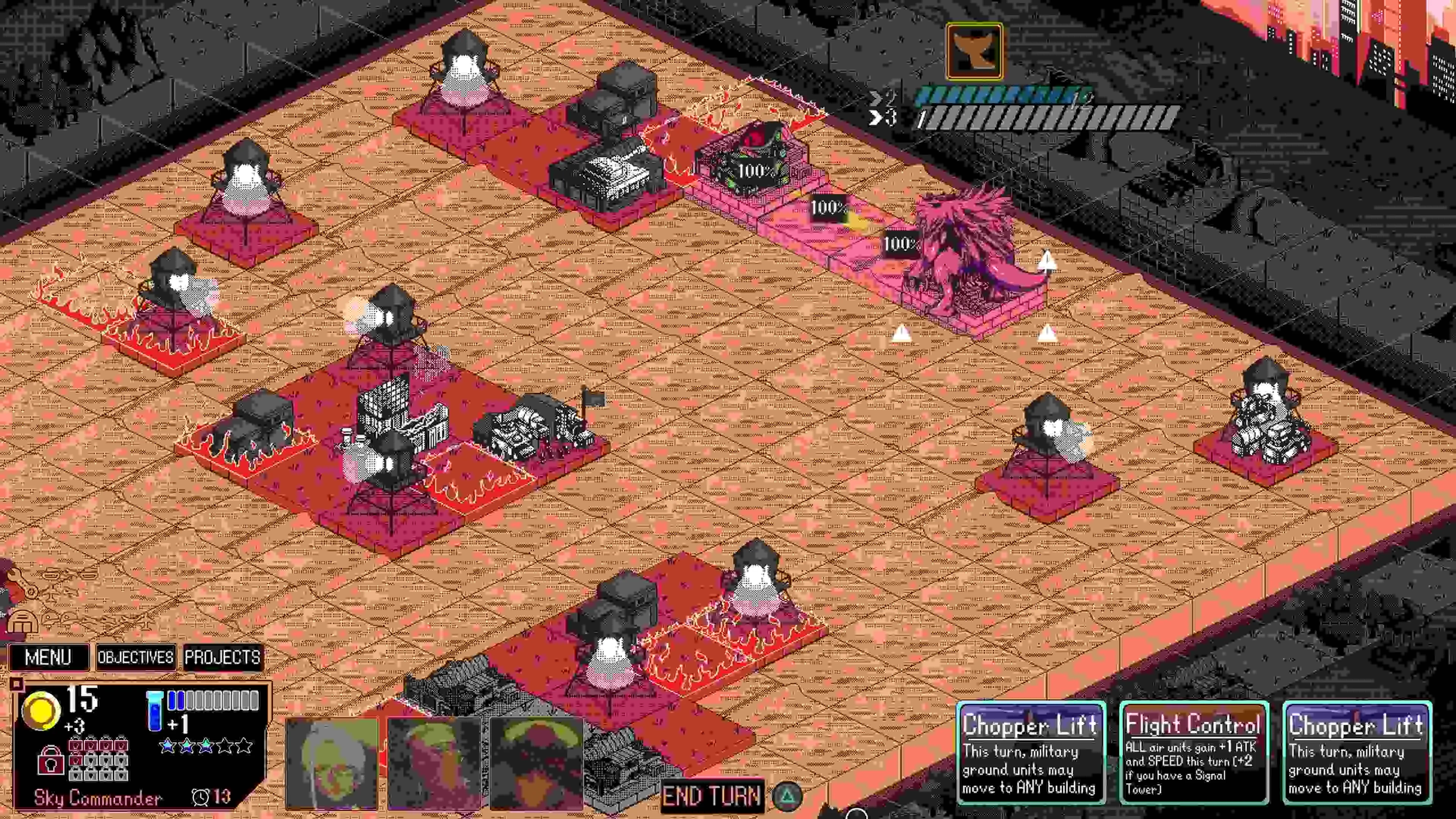 - Usa la estrategia para proteger a la ciudad que está sumida en una batalla y saca los tanques y aviones desechables. Otra opción son las armas... inusuales.