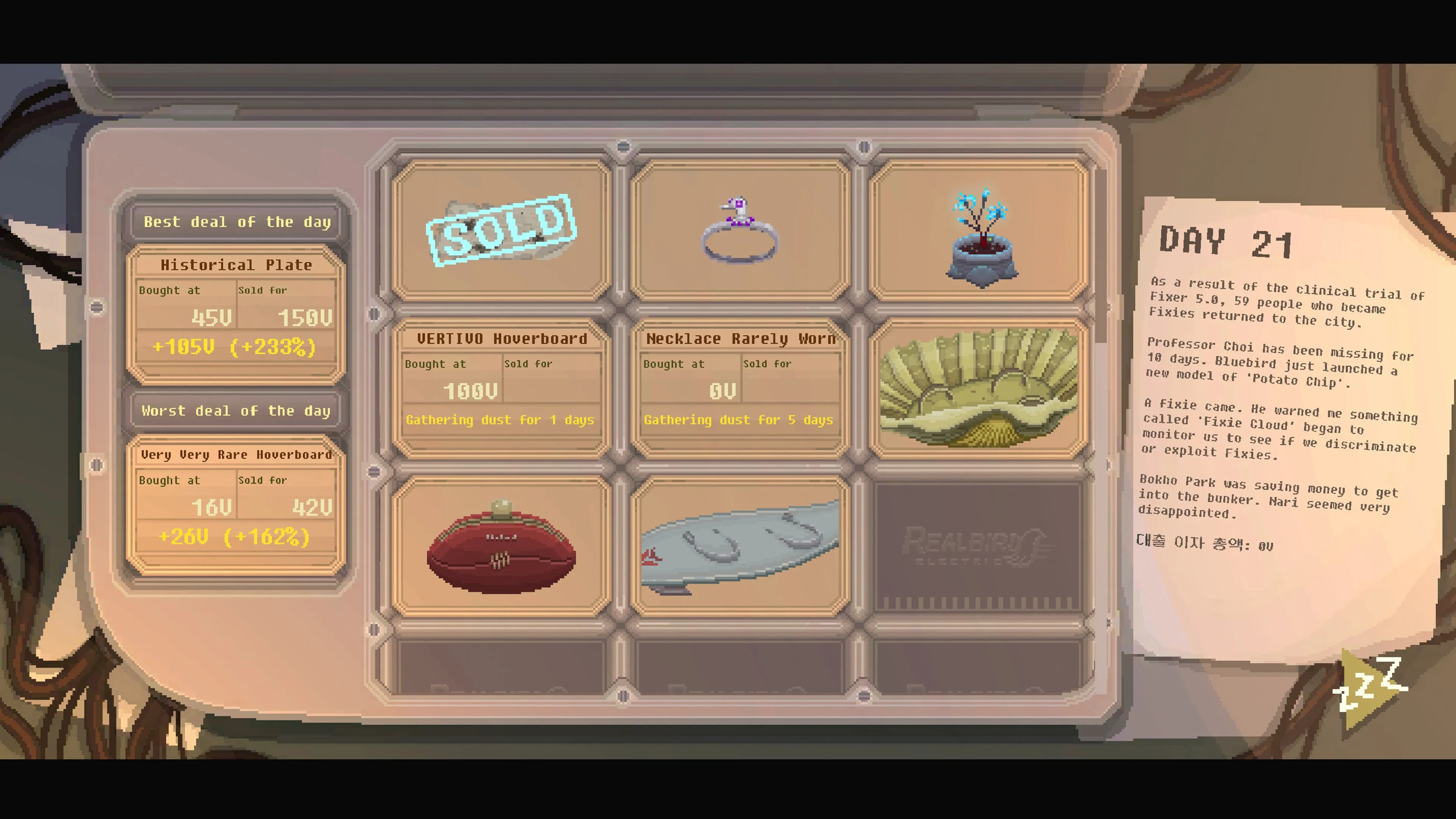 RENTABILIDAD: Exhibe los productos adquiridos en la tienda. La regla de Darcy's es comprar barato y vender caro. Pero no te dejes llevar por la codicia. En Ajik City la avaricia no está bien vista.