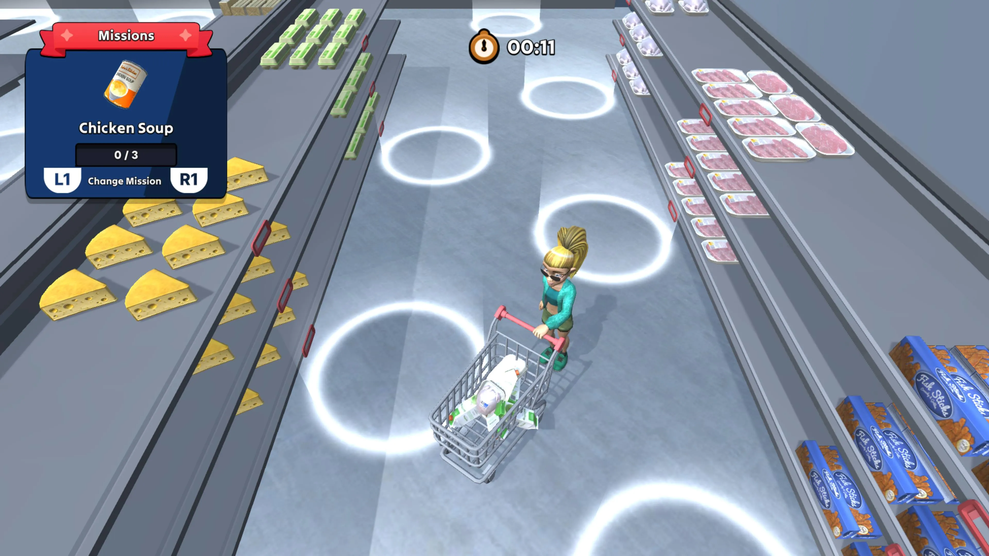 Armado con un carrito de compras, navegarás por los bulliciosos entornos de los supermercados, esquivando obstáculos y tomando decisiones estratégicas para llenar tu carrito con los productos necesarios antes de que se acabe el tiempo. Cada nivel aumenta en complejidad y urgencia, poniendo a prueba tu velocidad, precisión y habilidades de planificación.