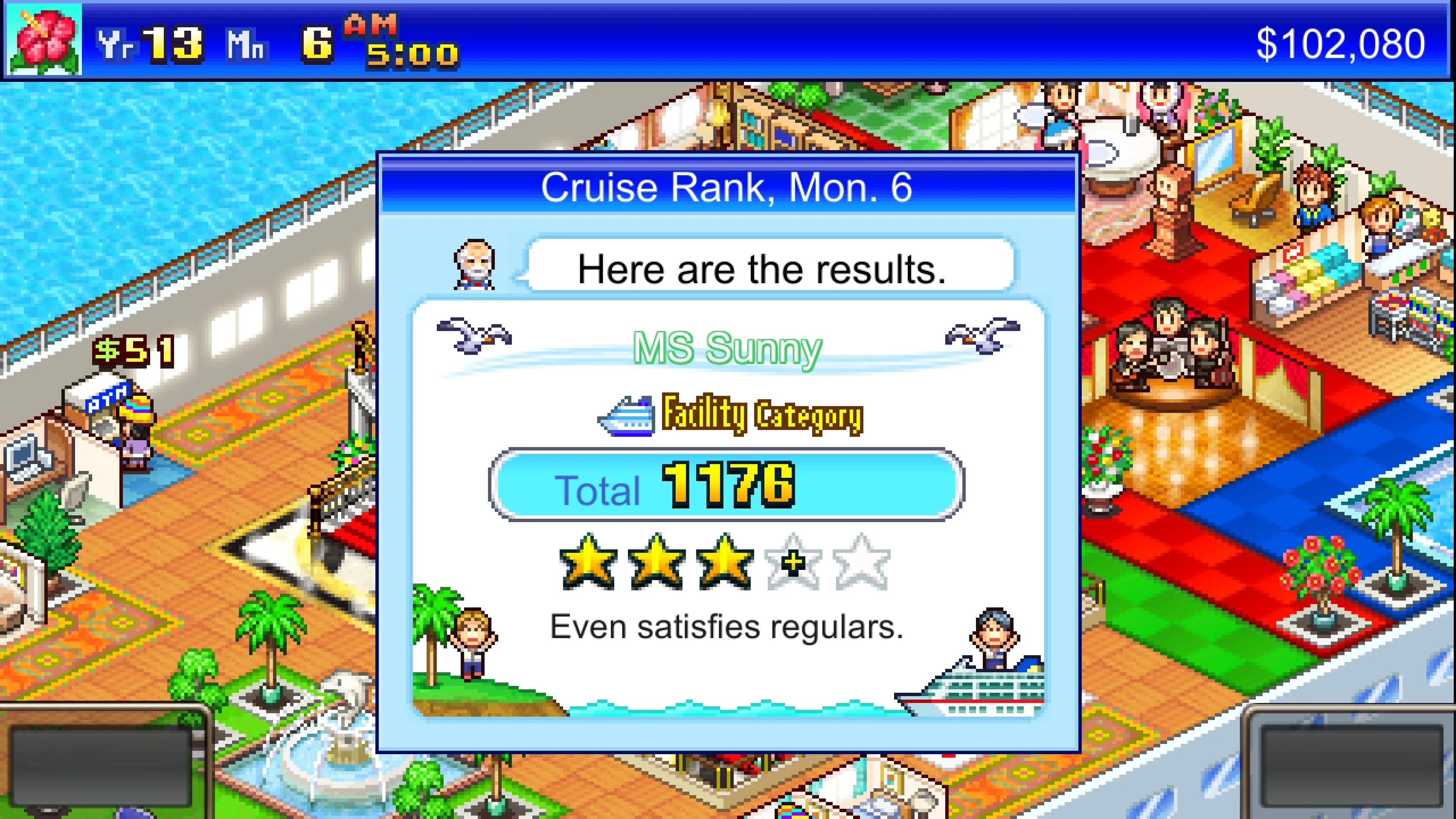 Coloca las instalaciones correctas unas junto a otras y podrás anotar muchos puntos con los pasajeros y los críticos. ¡Acumula suficiente fama y hasta las celebridades llegarán por montones cuando estés en el puerto!
