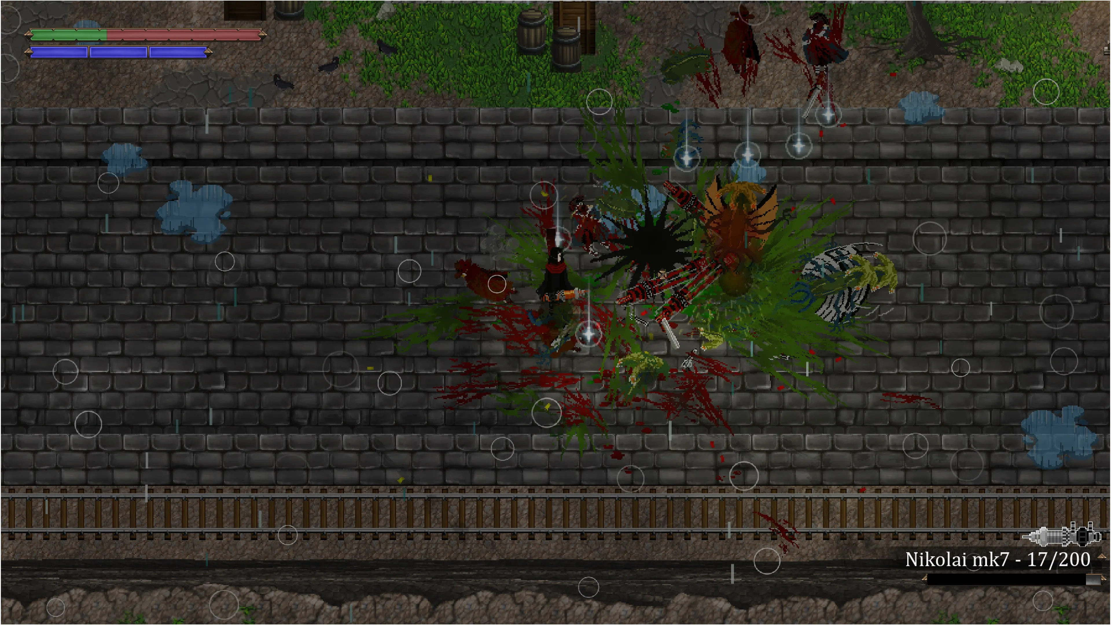Destroza el escenario y golpea a tus enemigos para que caigan en trampas. El continúo derramamiento de sangre y los escombros te ayudarán a sumergirte en el mundo a medida que te abres camino con ataques y explosiones.