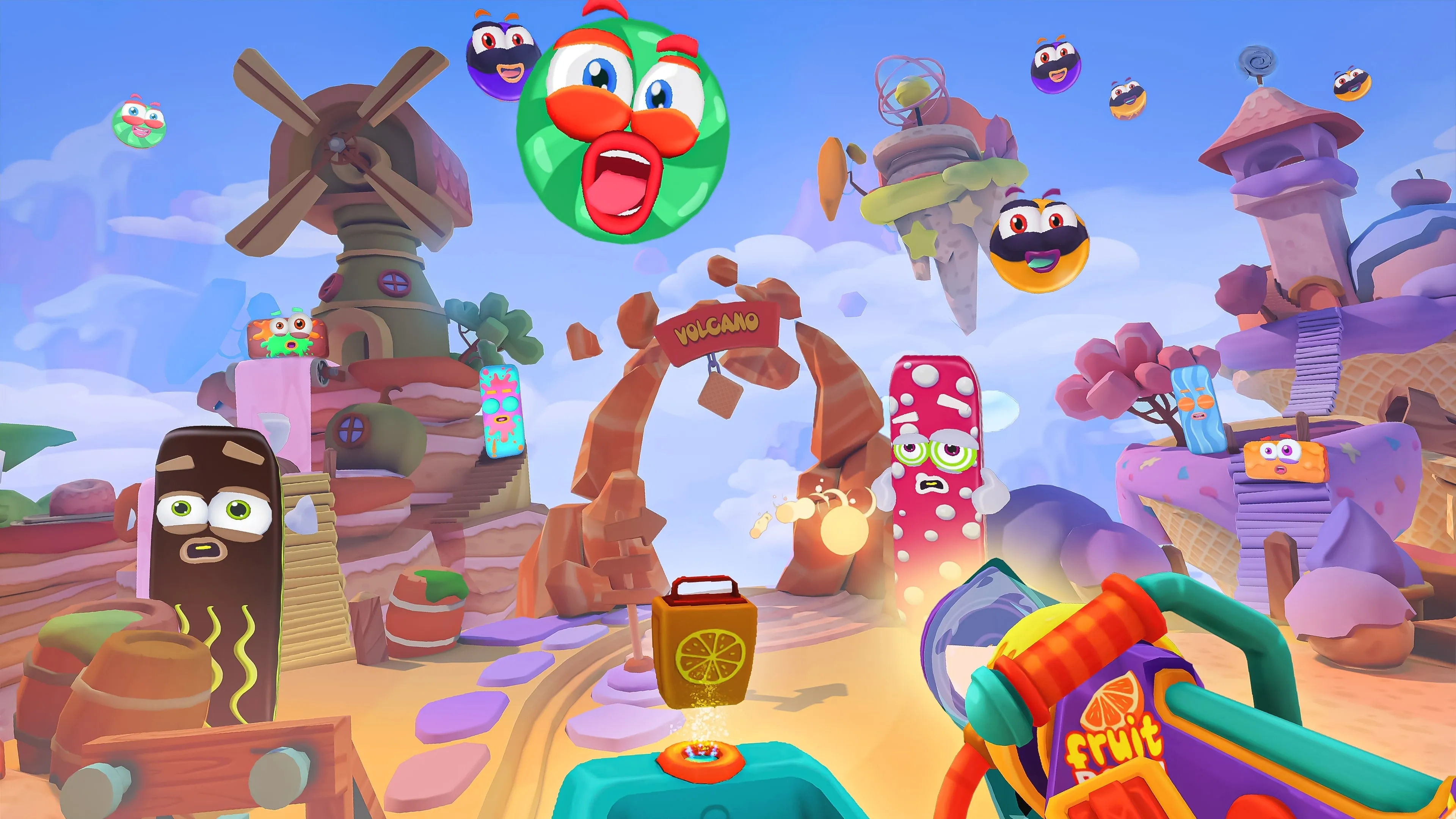 ¡Parte en un viaje a través de los sorprendentes niveles del Reino Azucarado! ¡Defiéndete de los ataques de graciosos y deliciosos enemigos que se hacen trizas tras impactarlos!